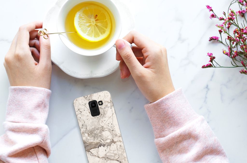 Dit design hoesje met Marmer Beige is voor de artistieke personen onder ons. De Grieken en Romeinen wisten het steen al te waarderen door het als bouw- en bekledingsmateriaal toe te passen. Naast het witte Carrara marmer met haar zacht grijze geaderde belijning zijn de diverse marmersoorten in een ruim kleurenpallet te krijgen. We hebben verschillende kleuren op design hoesjes gezet, zoals in dit geval beige marmer. Dit is een Samsung Galaxy J6 2018 TPU Siliconen Hoesje met marmer in beige kleur. Het marmer wordt bedrukt op de voorkant van een tpu case, die beschikt over opstaande randen aan de voorkant en goed combineert met een screenprotector. De rijkheid aan kleuren en varianties in afwerking geeft designers de vrijheid om met marmer hele mooie architectonische projecten te realiseren. Wij hebben onze designer ook veel vrijheid gegeven. Het resultaat zie je terug in deze tpu case met beige marmer, die jouw smartphone goed beschermt. De zijkanten van de case worden niet bedrukt met marmer.