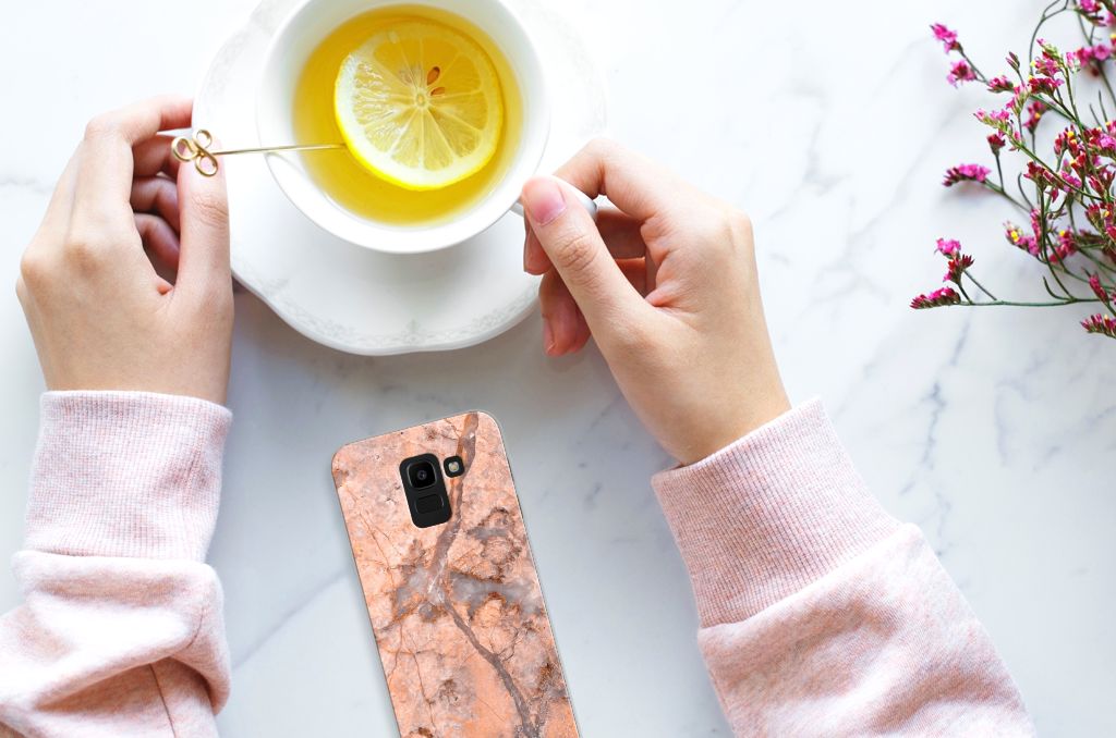 Samsung Galaxy J6 2018 TPU Siliconen Hoesje Marble Pink - Origineel Cadeau Vriendin