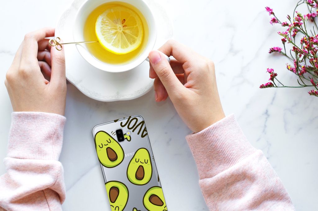 Avocado’s zijn niet alleen heel erg goed voor je, ze zijn ook super leuk op je telefoonhoesje. Dit unieke design vol schattige avocado’s zal jou en iedereen om je heen meteen opvrolijken. Nog een voordeel van dit design: deze avocado’s bederven nooit! Dit leuke Avocado Singing-ontwerp staat op een Telefoonhoesje met Naam voor de Samsung Galaxy J6 Plus (2018). Met deze vrolijke groene vruchten op je hoesje val jij zeker op. TPU is flexibel en onbreekbaar. Zo is je telefoon aan de achterkant en de randen heel goed beschermd. De case is aan de bovenkant bedrukt, de randen blijven transparant. Het TPU-hoesje is perfect te combineren met een screenprotector, zo zijn je telefoon en je beeldscherm perfect beschermd.