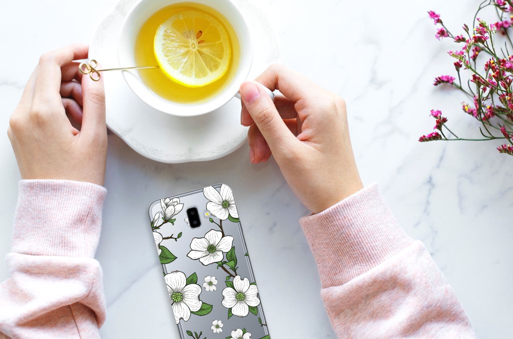 Ben je op zoek naar een uniek telefoonhoesje voor je Samsung Galaxy J6 Plus (2018)? Dan ben je bij B2C Telecom aan het juiste adres! Speciaal voor jou hebben we dit prachtige Dogwood Flowers design in onze collectie hoesjes opgenomen. Het design wordt bedrukt op een TPU Case en is gemaakt van flexibel rubber. Het design wordt alleen aan de bovenkant van het hoesje bedrukt en de randen blijven transparant. Aan de zijkanten zijn uitsparingen gemaakt waardoor je met gemak alle knoppen en poorten kunt bedienen. Wij adviseren om dit hoesje in combinatie met een screenprotector te gebruiken voor een langere levensduur van je telefoon. Wil je dit design hoesje nog iets extra's geven? Voeg dan gratis je naam of een quote toe! Is dit design hoesje toch niet helemaal wat je zocht? Ontwerp dan zelf een hoesje in ons ontwerpprogramma.