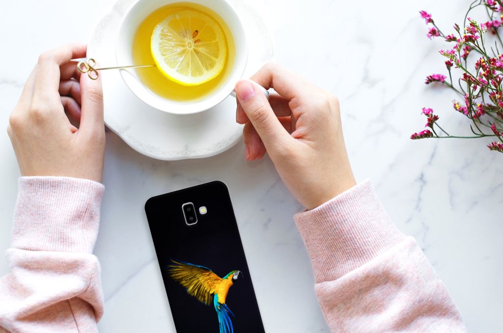 Dit design hoesje met Papegaai tegen een zwarte achtergrond is een zeer flexibele bescherming voor jouw smartphone. Dit komt vooral omdat deze print op een tpu case staat. Dit is een zeer buigzaam hoesje, dat de telefoon vooral aan de achterkant en zijkanten beschermt. De bovenkant van de Samsung Galaxy J6 Plus (2018) TPU Hoesje wordt bedrukt met deze schitterende print. De zijkanten blijven doorzichtig. Papegaaien zijn erg sociale vogels die voldoende aandacht en gezelschap nodig hebben. Als je er voor kiest om een papegaai aan te schaffen, is het een goed idee om een koppeltje te nemen. Koop je meerdere tpu cases met een papegaai, dan ga je automatisch minder betalen per hoesje. Wij hanteren een systeem van bundelkorting. Dus koop dit hoesje met opstaande randen voor een spotprijs.