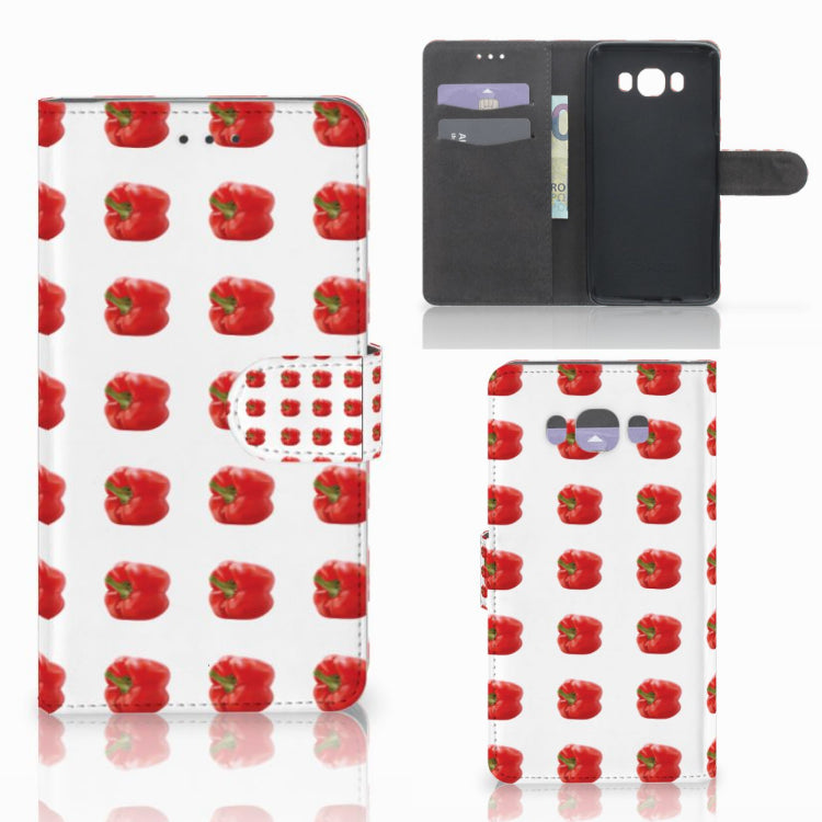 Er zit pit in jouw Samsung Galaxy J7 2016 Book Cover dankzij dit design met rode paprika’s. Paprika’s zijn er in allerlei kleuren en vormen en ze hebben gemeen dat ze heel erg gezond zijn. De rode paprika’s op deze case staan op een grijs met witte geblokte achtergrond en vormen een opvallende verschijning. Heb jij ooit iemand in je nabije omgeving rond zien lopen met een design hoesje met rode paprika’s? Waarschijnlijk niet. Dit boekhoesje met rode paprika’s beschermt jouw telefoon aan alle zijden en beschikt over verschillende opbergvakjes voor pasjes en briefgeld. De case sluit perfect af met het magnetische lipje aan de buitenkant. Zeker weten dat je met dit hoesje met rode paprika’s een smartphone accessoire te pakken hebt waarmee je jezelf in de schijnwerpers zet. De houder aan de binnenzijde van het boekhoesje met rode paprika’s is van TPU. Als je andere kleuren paprika’s op je hoesje wilt, raden we je aan ons assortiment design hoesjes te bekijken of zelf een hoesje te ontwerpen.