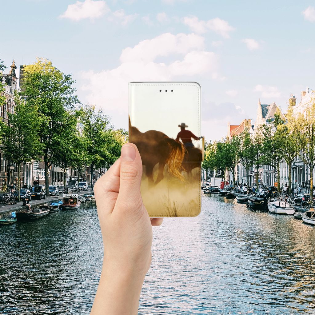Voor de paardenliefhebbers onder ons hebben we onze collectie uitgebreid met dit design hoesje met print van een cowboy met paarden. Vroeger hield de mens vooral werkpaarden, inmiddels hebben we vriendschap gesloten met het paard. Vandaar dat het ook een favoriet dier is op onze smartphonehoesjes, zoals deze boekhoesjes. Dit Telefoonhoesje met Pasjes met paarden is niet alleen super mooi en chique, het sluit ook nog perfect dankzij het lipje aan de buitenzijde. Verder heeft de case een TPU houder aan de binnenzijde en houders voor pasjes en briefgeld. Zie je liever je eigen paard terug op een hoesje voor jouw Samsung Galaxy J7 2016? Dat kan! Door zelf een uniek hoesje te ontwerpen, met eigen foto’s en teksten. Het boekhoesje met paarden wordt aan alle zijden bedrukt.