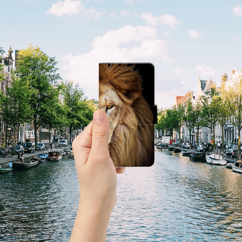 Samsung Galaxy J7 2016 Telefoonhoesje met Pasjes en met magnetische sluitclip Leeuw