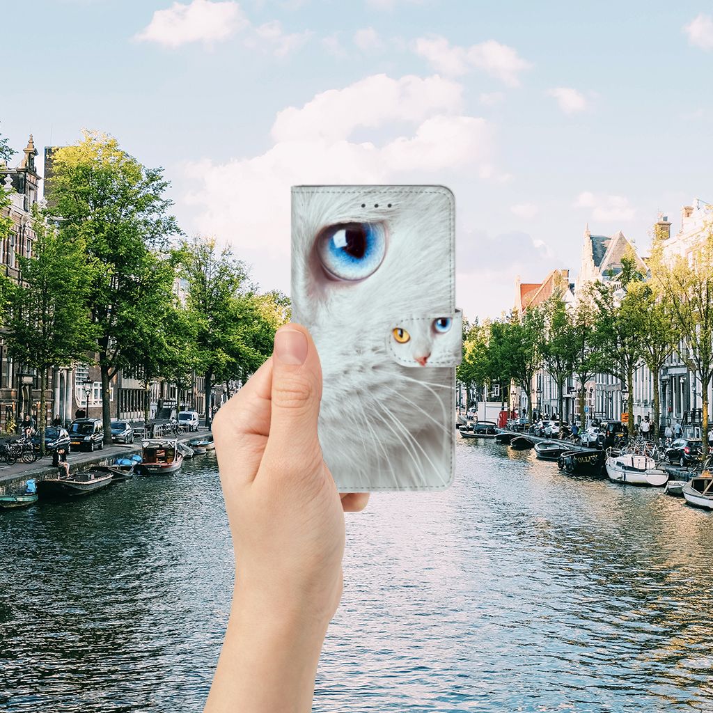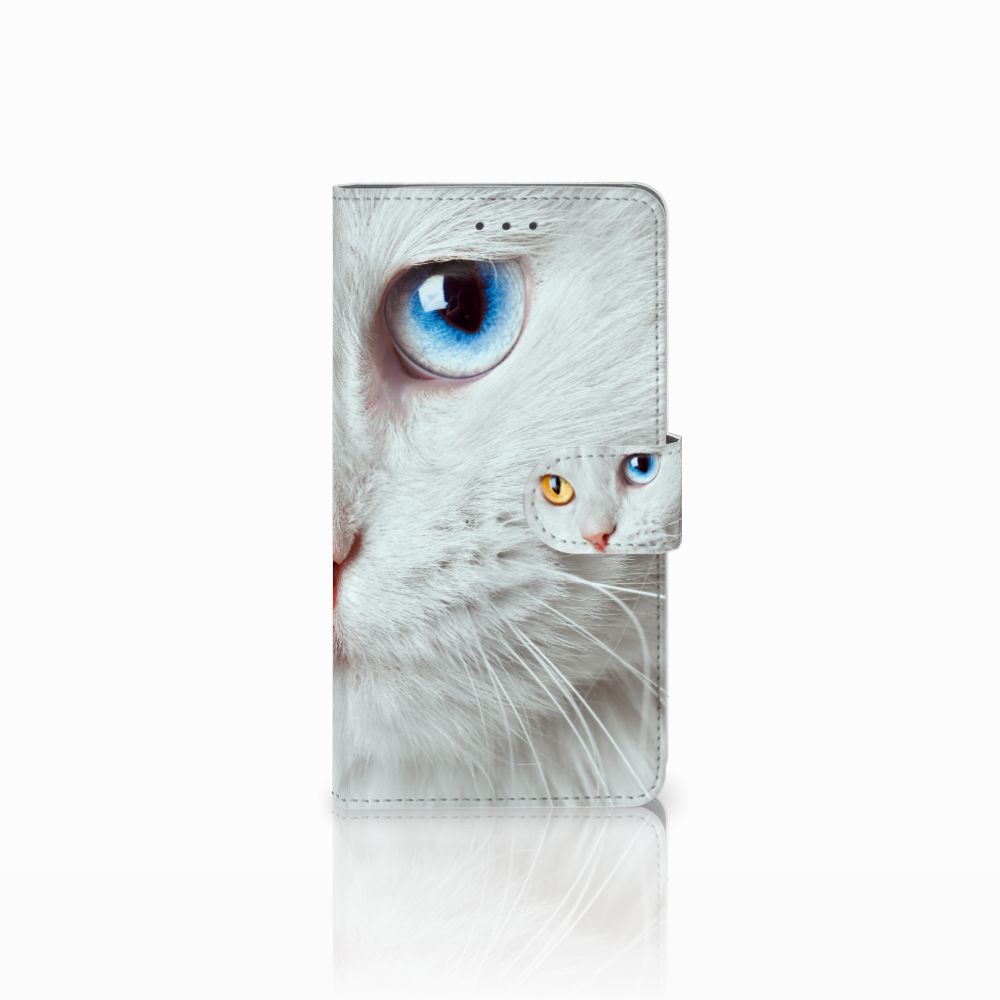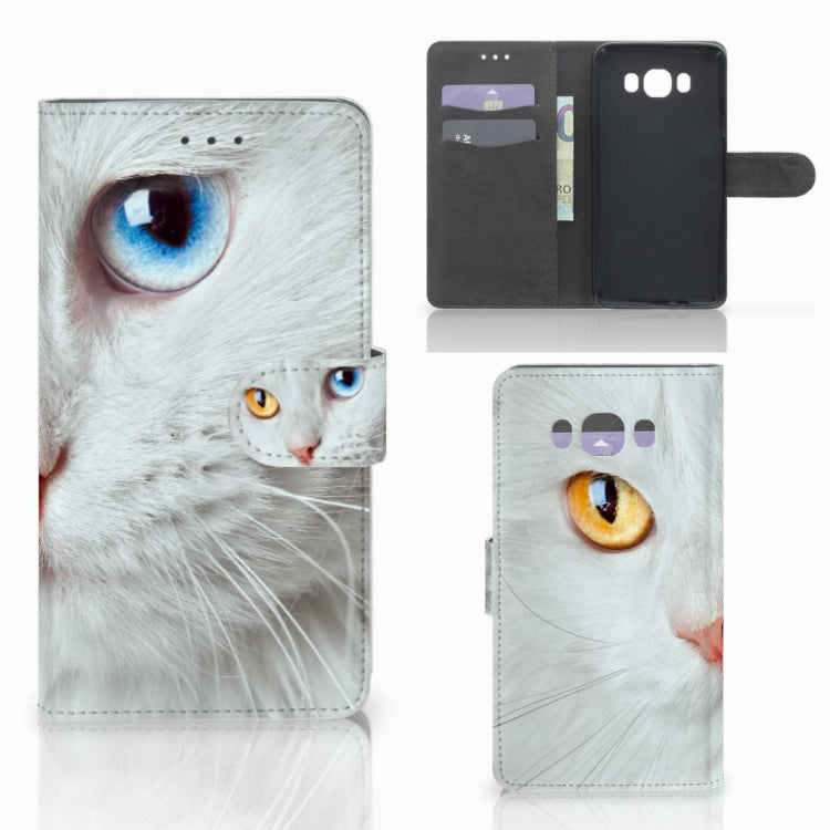 Samsung Galaxy J7 2016 Telefoonhoesje met magnetisch lipje als sluiting Witte Kat