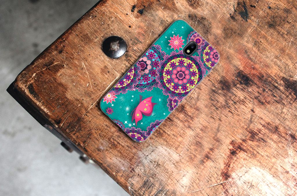 Deze opvallende Samsung Galaxy J7 2017 | J7 Pro Hoesje maken met Cirkels en Vlinders is een ware eyecatcher. De meeste vlinders hebben een onopvallende vleugelkleur en dat kun je van de soort op dit hoesje ook zeker wel zeggen. Wij kunnen deze opvallende vlinders en cirkels op een zeer handige tpu case zetten. Deze hoesjes zijn gewild omwille hun flexibiliteit. Met onze geavanceerde printer zetten we de print van opvallende vlinders en cirkels op de achterkant van het hoesje. De case met vlinders en cirkels blijft aan de zijkanten doorzichtig, zodat je maximaal het design van je smartphone behoudt. Verder is je telefoon natuurlijk goed beschermd met deze tpu case met print van blauwe vlinders. De bovenkant wordt bedrukt, de zijkanten niet. Met een screenprotector bescherm je ook het scherm maximaal.