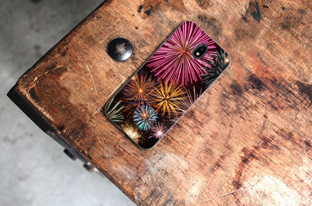 Deze Samsung Galaxy J7 2017 | J7 Pro Silicone Back Cover levert gegarandeerd Vuurwerk op. Kijk alleen al eens naar de print van siervuurwerk, in zeer veel verschillende kleuren. Als je dit hoesje ziet kun je bijna niet geloven dat sommige gemeenten in Nederland overwegen om vuurwerk te verbieden. Er gebeuren weliswaar ongelukken mee, maar zoiets schitterends als op deze tpu case met vuurwerk wil je toch gewoon niet missen. Bovendien beschermt dit hoesje jouw smartphone ook nog eens erg goed. De bovenkant van dit hoesje wordt bedrukt, de zijkanten blijven doorzichtig. De case is gemaakt van schokabsorberend materiaal en past altijd in je broekzak. Onder alle omstandigheden zal deze TPU case perfect functioneren, ook als je met nieuwjaar vuurwerk aan het afsteken bent. Zorg dan overigens wel dat je zelf ook voldoende afgeschermd bent van het vuurwerk.