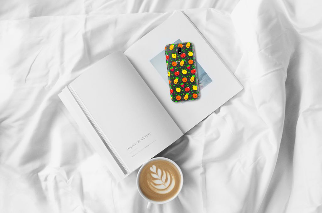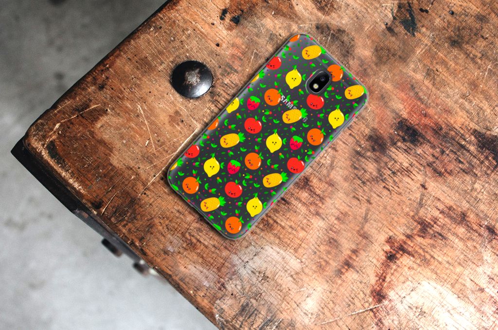 Een fris, fruitig en vrolijk hoesje, deze case met afbeeldingen van aardbeien, ananassen, appels, sinaasappels en citroenen. Minstens twee stuks fruit per dag wordt aanbevolen als dagelijkse hoeveelheid voor de mens. Dit verkleint de kans op allerlei ziekten. Dus met het aantal stukken fruit op de Samsung Galaxy J7 2017 | J7 Pro Siliconen Case zou je wel een maandje zoet moeten zijn. Met het hoesje zelf kun je je hele leven doen, dit is namelijk niet stuk te krijgen. Dit komt door het sterke en flexibele materiaal waarvan het gemaakt is. De vrolijk stemmende case het desing Fruits maakt jouw telefoon dus zeer duurzaam. Zorg ervoor dat jouw smartphone gezond blijft en kies voor dit hoesje met frivool fruit. Een tpu case met fruit wordt alleen aan de bovenkant bedrukt en is zeer flexibel. De randen van het hoesje blijven transparant en worden niet bedrukt met het fruit.