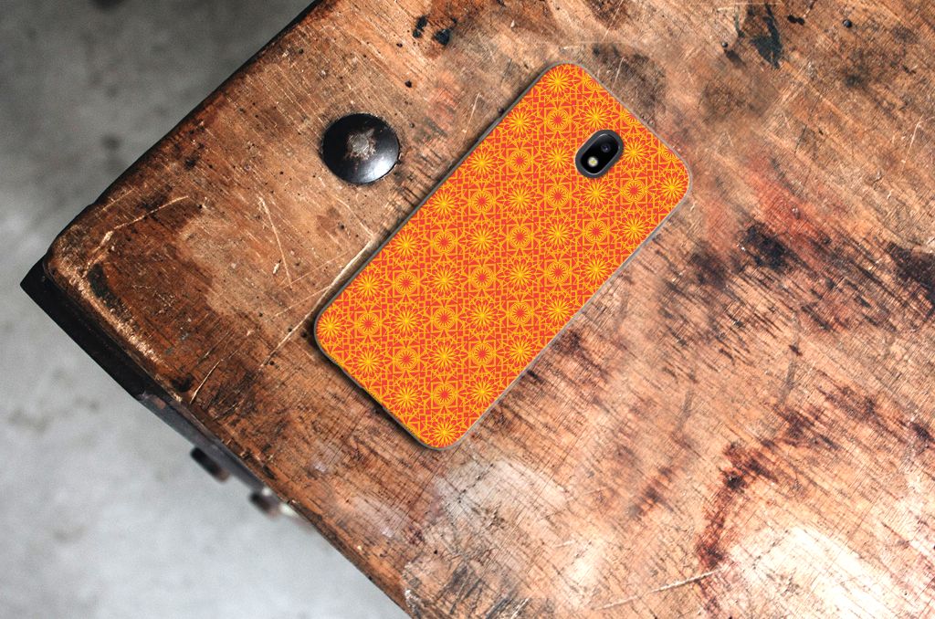 Batikken is een super oude kunstvorm. Met deze methode wordt een geweven stof met verf gedecoreerd. Er zijn stoffen gevonden in het Midden-Oosten en Azië van meer dan tweeduizend jaar oud. Wie had kunnen bedenken dat we zo’n mooie batik-print duizenden jaren later zelfs op telefoonhoesjes zouden terugvinden? Dit TPU bumper in voor je Samsung Galaxy J7 2017 | J7 Pro heeft een mooie oranje kleur en een prachtig symmetrisch patroon. Vanwege de felle kleurtjes is dit hoesje onwijs vrolijk. Naast het feit dat dit hoesje gewoon erg mooi is, is je telefoon er natuurlijk ook goed mee beschermd. TPU is een zeer sterk maar toch licht en flexibel materiaal en is daarom ideaal voor om je smartphone.