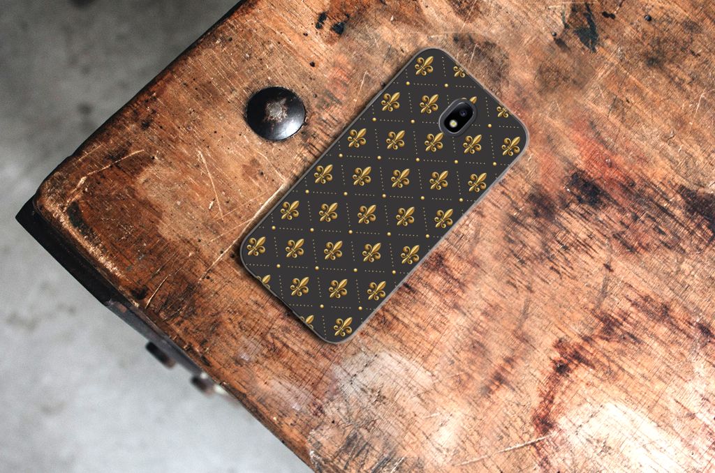 Hét symbool van het Franse koningshuis, de fleur-de-lis (ook fleur-de-lys of Franse lelie), mag natuurlijk niet ontbreken in onze collectie design hoesjes. De naam betekent letterlijk lelie-bloem. Deze Franse Lelie kunnen we op verschillende soorten cases printen, zoals een zeer praktische en onderscheidende tpu case. Een Samsung Galaxy J7 2017 | J7 Pro TPU bumper met Franse Lelie ziet er niet alleen ontzettend chique uit, het is dankzij onder meer het zeer flexibele materiaal zeer praktisch. Het is niet helemaal duidelijk welke bloem model heeft gestaan voor het Franse symbool. Wel is duidelijk dat de Franse lelie volledig tot wasdom komt op deze handige tpu case. We bedrukken de tpu case op het moment dat jij deze bestelt. Op de bovenzijde komt de Franse lelie te staan, de zijkanten blijven transparant.