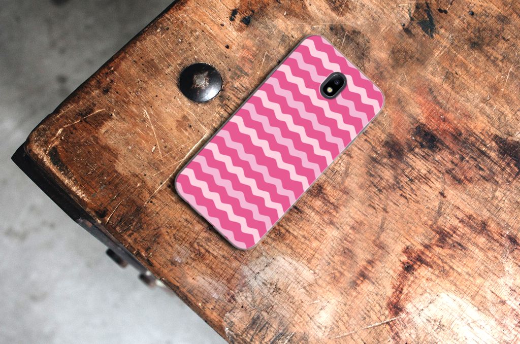Dit design hoesje met roze golven is speciaal op maat gemaakt voor jouw telefoon. We hebben verschillende kleurstellingen gebruikt in het design, zodat de case er spannend en leuk uitziet. Dit roze hoesje met verschillende soorten golven ziet er opwindend uit. Het Samsung Galaxy J7 2017 | J7 Pro TPU bumper wordt in ons eigen magazijn bedrukt, vandaar dat we de kosten zeer laag kunnen houden. Wij kunnen het duurzame hoesje met Waves Pink zeer snel leveren. Heb jij altijd al een design hoesje met verschillende soorten roze willen hebben? Deze TPU case met roze golven wordt alleen aan de bovenkant bedrukt en is zeer flexibel. De randen van het hoesje met licht roze golven blijven transparant en worden niet bedrukt. Met dit roze hoesje past jouw telefoon altijd in je broekzak.