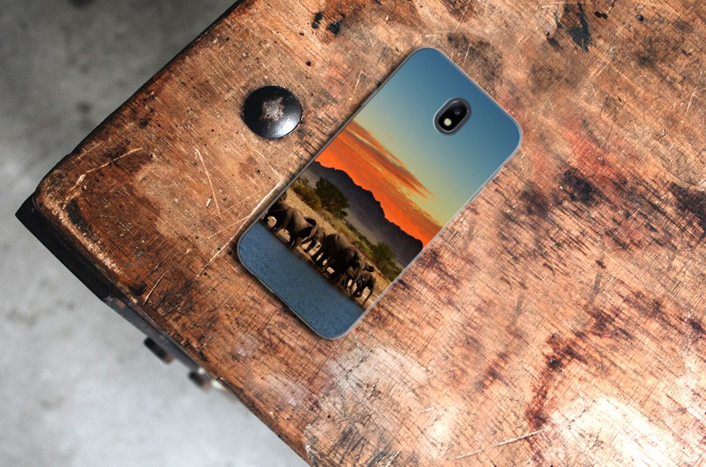 Dit hoesje is zo sterk als een olifant. Dat is goed nieuws, want jouw telefoon heeft een zeer goede bescherming nodig. Dat krijg je met dit design hoesje met print van Olifanten. De Afrikaanse olifant, het allergrootste landdier ter wereld, heeft waarschijnlijk het meest te lijden gehad van stroperij om het ivoor. Deze dieren verdienen dus een goede bescherming, net als jouw smartphone. Met een Samsung Galaxy J7 2017 | J7 Pro TPU Hoesje met olifant erop krijg je dit zeker voor elkaar. De tpu case beschermt vooral de achterkant en zijkanten van je telefoon en is gemaakt van onbreekbaar materiaal. De sterke olifant komt zeer goed tot zijn recht op deze case, die zeer flexibel is. Alleen de bovenzijde van de case wordt bedrukt met olifanten, de zijkanten blijven transparant.