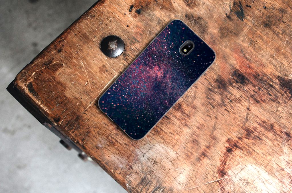 Je waant je in de zevende hemel met dit kunstzinnige, glitterachtige design hoesje met paarse en blauwe kleuren tegen een inktzwarte achtergrond. Het smartphone hoesje heeft ook een wat science fiction achtige allure. Met deze design Stars case zul je zeker opvallen. Als dit je bedoeling is, bestel dat snel dit waanzinnig mooie product voor je Samsung Galaxy J7 2017 | J7 Pro. Het telefoonhoesje is van alle gemakken voorzien en combineert een hele fraaie uitstraling met maximaal comfort. Bovendien is het gemaakt van zeer stevig en flexibel materiaal. Het unieke design, door B2C Telecom ontworpen, staat op een TPU Hoesje. Dit hoesje wordt alleen aan de bovenkant bedrukt en is zeer flexibel. De randen van het hoesje blijven transparant en worden niet bedrukt. Met dit hoesje past jouw telefoon altijd in je broekzak.