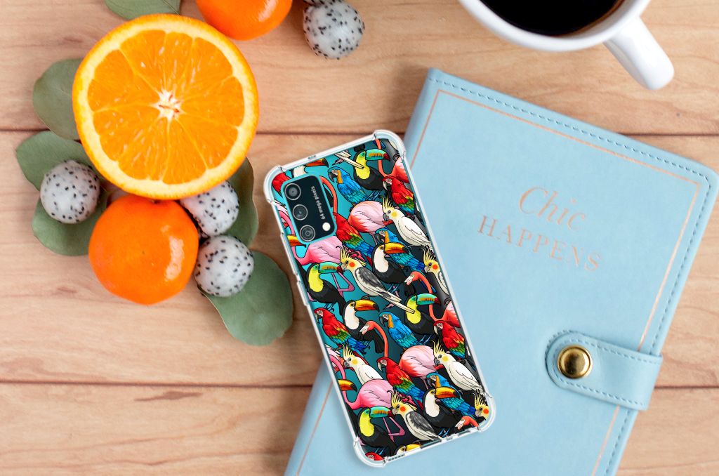 Ben je op zoek naar een uniek telefoonhoesje voor je Samsung Galaxy M02s | A02s? Dan ben je bij B2C Telecom aan het juiste adres! Speciaal voor jou hebben we dit prachtige Birds design in onze collectie hoesjes opgenomen. Het design wordt bedrukt op een Case Anti-shock en is gemaakt van flexibel rubber. Het hoesje is perfect voor de actieve smartphonegebruiker door de opstaande randen/hoeken. Denk aan mensen die veel sporten, reizen of wandelen en net iets meer zekerheid willen als het op hun geliefde telefoon aankomt. Het design wordt alleen aan de bovenkant van het hoesje bedrukt en de randen blijven transparant. Aan de zijkanten zijn uitsparingen gemaakt waardoor je met gemak alle knoppen en poorten kunt bedienen. Wij adviseren om dit hoesje in combinatie met een screenprotector te gebruiken voor een langere levensduur van je telefoon. Wil je dit hoesje nog iets extra's geven? Voeg dan gratis je naam of een quote toe! Is dit design hoesje toch niet helemaal wat je zocht? Ontwerp dan zelf een hoesje in ons ontwerpprogramma.