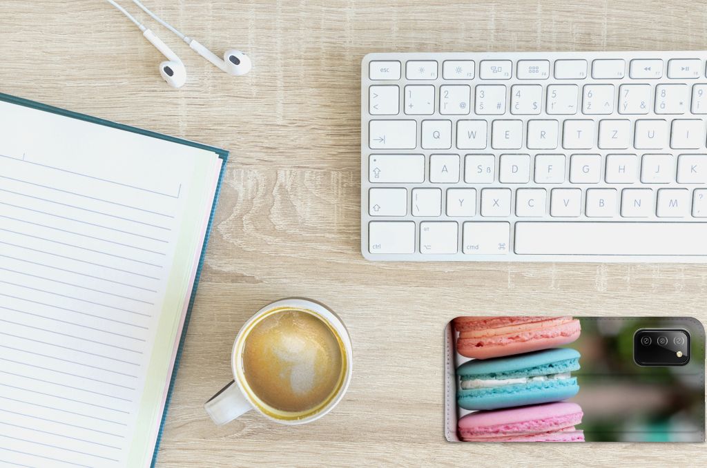 Dit stand hoesje met macarons is een zeer opvallende bescherming voor jouw smartphone. Macarons zijn Franse koekjes: kleine, rond en luchtig. Ze zijn aan elkaar geplakt met een zachte vulling. Ze worden in veel verschillende smaken gemaakt, herkenbaar aan de verschillende kleuren zoals chocolade (donkerbruin), mokka (middenbruin), kersen (rood), pistache (groen), aardbei (roze), framboos (karmijn), citroen (geel) en kokos (roomwit). Deze kleuren kun je natuurlijk ook zien op dit fraaie design hoesje met macarons. Heb je altijd al een Samsung Galaxy M02s | A02s Flip Style Cover willen hebben met macarons? Grijp dan nu je kans. Deze case heeft zeer veel goede eigenschappen, zoals 1 opbergvakje en een magnetische sluiting aan de binnenkant. Dit design hoesje met macarons wordt aan alle zijden bedrukt. De houder aan de binnenkant van het hoesje is van TPU. De case heeft ook een handige standaard.