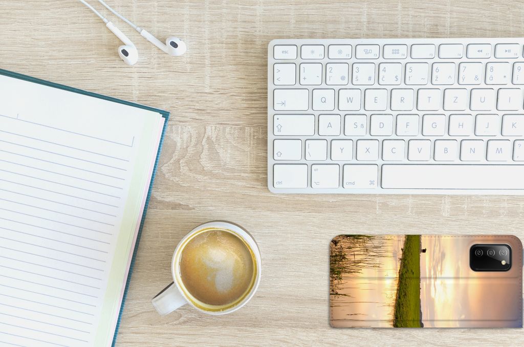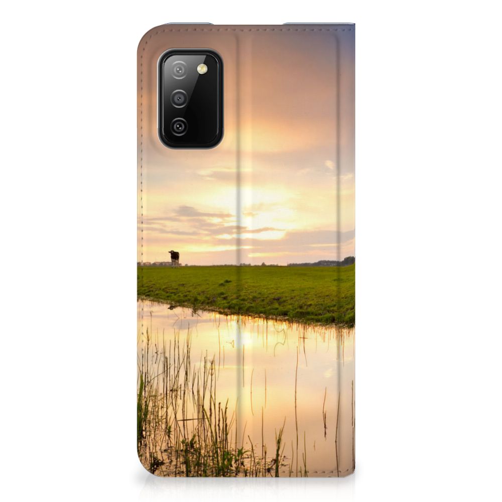Het levert een idyllisch plaatje op, dit hoesje met een koe en ondergaande zon op de achtergrond. Door een koe buiten te laten lopen en grazen, hebben ze minder kans om ziek te worden. De Koe graast het liefst met soortgenoten, al zijn deze een stukje van de koe op de case verwijderd. Dit levert ook een mooi plaatje op, zoals je kunt zien op dit design hoesje. Deze stand case ziet er strak uit en is voorzien van verschillende uitsparingen. Een Samsung Galaxy M02s | A02s Hoesje maken met magneet aan de binnenzijde beschermt jouw smartphone overal. Alle zijden zijn bedrukt. Koeien hebben lange graasperioden nodig, afgewisseld door rust- en herkauwperioden. Zo goed als grazen voelt voor koeien, zo lang zal jouw design hoesje meegaan. De binnenkant van de stand case is van TPU, de buitenzijde van leer.