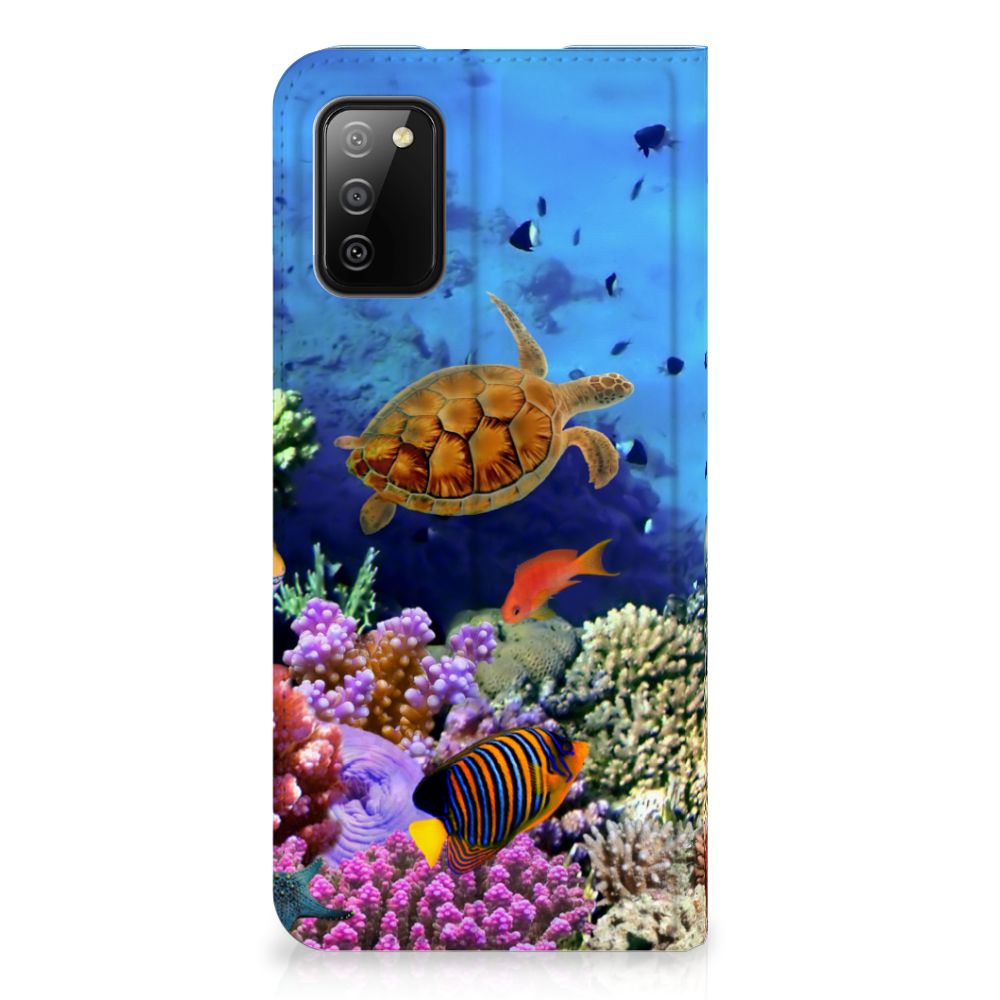 Dit kleurrijke hoesje met tropische Vissen is een ware eyecatcher. Als je aan het duiken bent en je treft een school aan met dit soort opvallende vissen, dan heb je een geweldige ervaring. Maar je hoeft er eigenlijk niet per se het water voor in te duiken. Want wij hebben een schitterende verzameling vissen op dit design hoesje gezet. Met onze zeer geavanceerde printer zetten we de afbeelding van vissen op alle zijden van de Samsung Galaxy M02s | A02s Hoesje maken. De case heeft aan de binnenkant een vakje waarin je jouw creditcard of ander pasje kwijt kunt. Ga je een dagje vissen, dan hoef je de portemonnee dus ook niet op zak te hebben. Verder is je telefoon natuurlijk maximaal beschermd met deze stand case met print van tropische vissen. De houder aan de binnenzijde van het design hoesje met vissen print is van TPU.