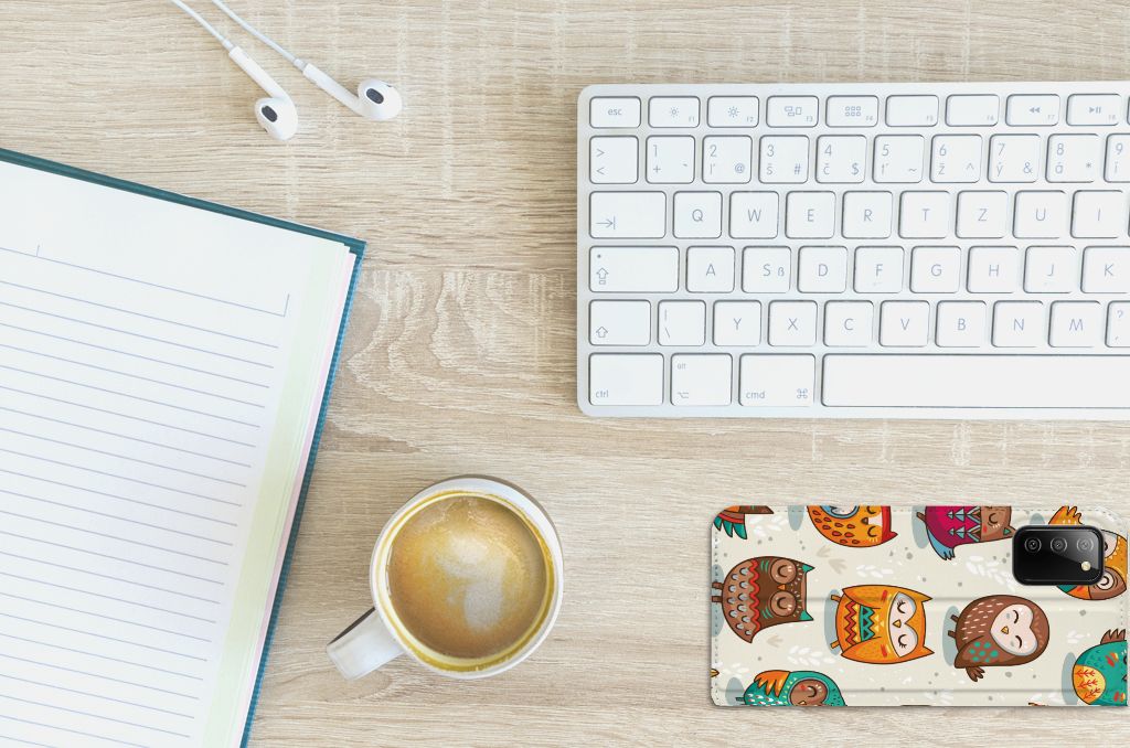 Deze Samsung Galaxy M02s | A02s Hoesje maken met Vrolijke Uilen is echt iets voor de nachtbrakers onder ons. De uil is zoals je weet bij uitstek een vogel die in de nachtelijke uren actief is. Ben jij ook iemand die s ’nachts tot leven komt, dan is deze stand case met uilen in felle kleuren echt iets voor jou. Als je tot in de late uurtjes op stap bent, komt het goed uit dat jouw smartphone aan alle kanten goed is beschermd met deze stand case met uilen. De case met uilen heeft een magnetische sluiting aan de binnenkant, waardoor de hoes niet openklapt als die uit je handen valt. Jouw creditcard of pinpas heb je als het goed is veilig opgeborgen in het vakje aan de binnenzijde. De houder aan de binnenzijde van de case met print van uilen is van het flexibele TPU. De wat ruigere types hebben veel baat bij deze stand case met uilen in felle kleuren.