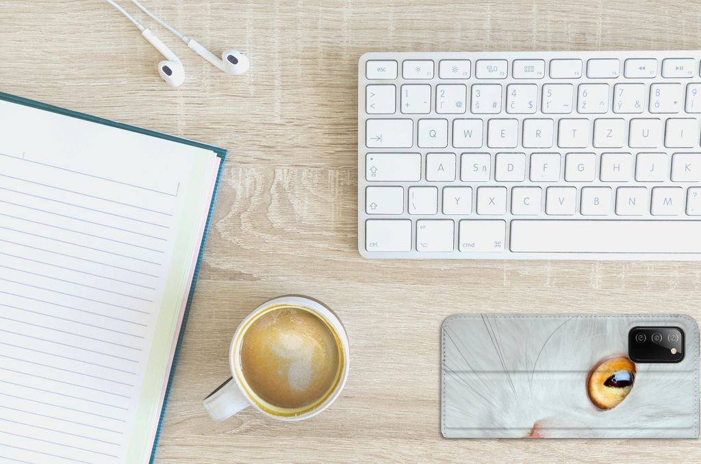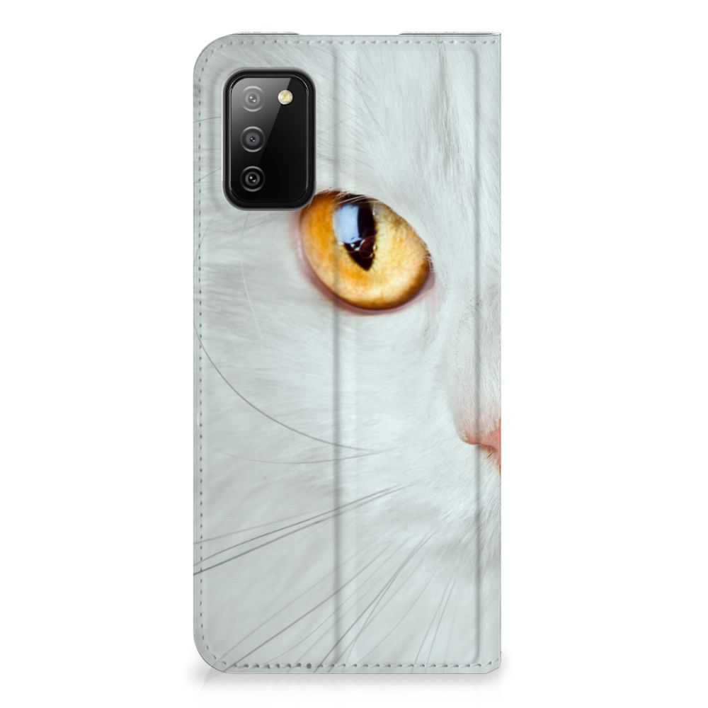Witte katten zijn natuurlijk extra speciaal, vandaar we een exemplaar op een design hoesje hebben gezet. Een witte kat schijnt trouwens ook slechter te kunnen horen dan katten met een andere kleur. Deze witte kat staat op een zeer prominente wijze op een stand case. Deze stand case met witte kat ziet er geweldig uit en is voorzien van verschillende uitsparingen en een speciale standaard. Een Samsung Galaxy M02s | A02s Hoesje maken met witte kat beschermt jouw smartphone perfect. Alle zijden van de case zijn bedrukt. Jouw smartphone wordt erg duurzaam met dit design hoesje. Het TPU aan de binnenzijde is zeer flexibel en het pu-leer oogt chique. Verder heeft de case een houder voor bijvoorbeeld je rijbewijs aan de binnenkant.