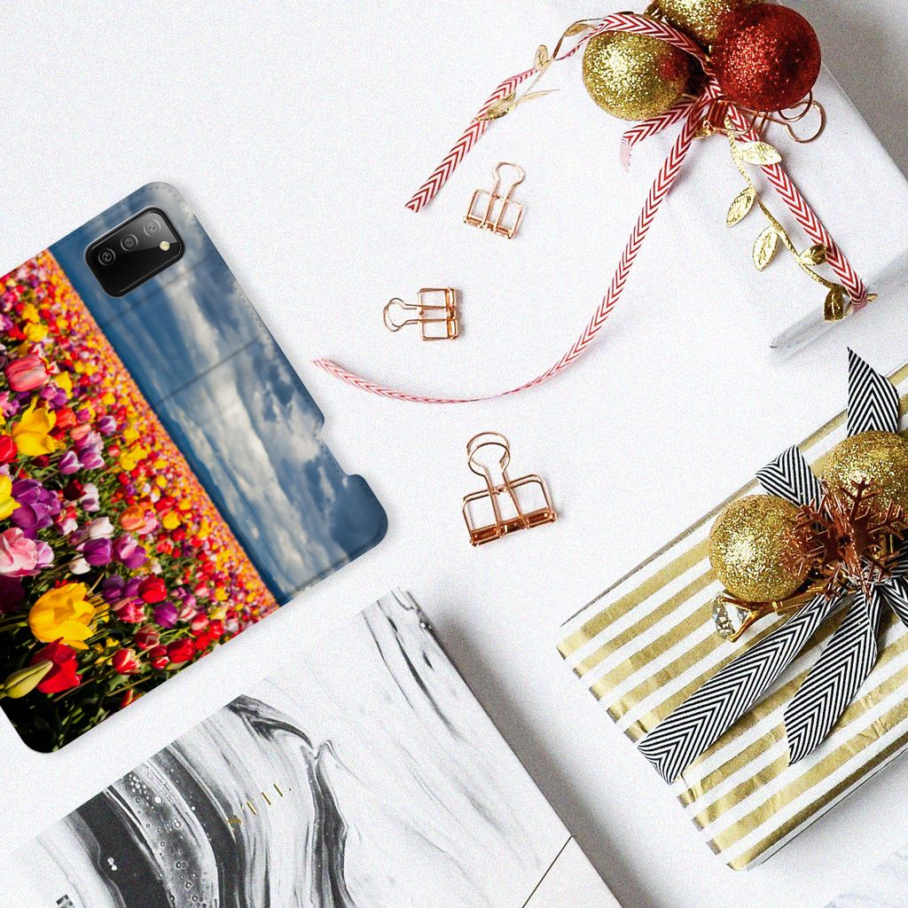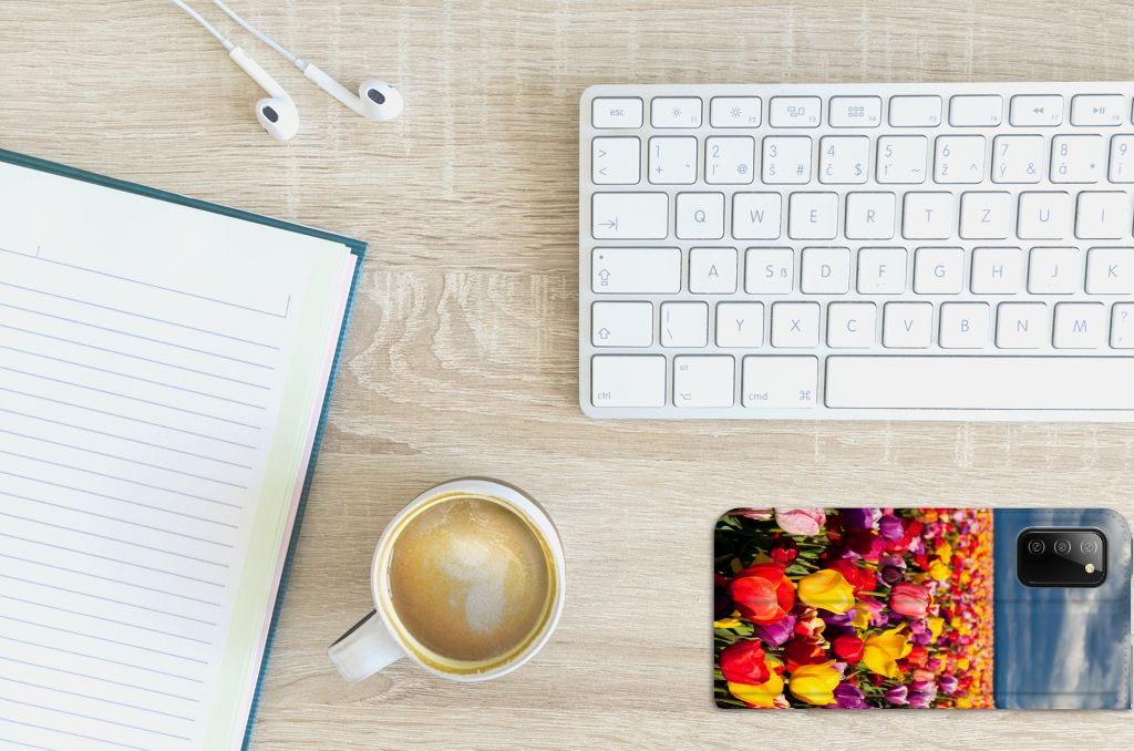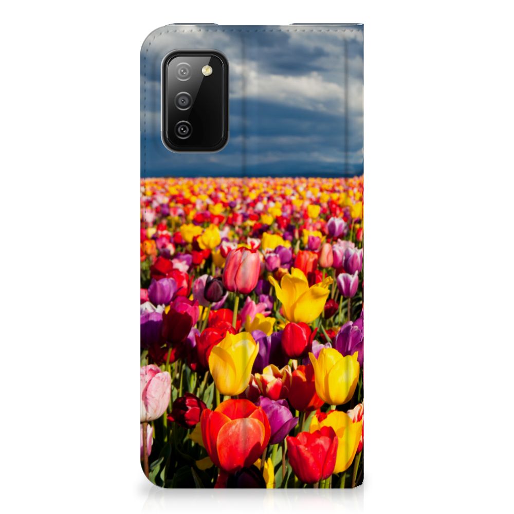 De tulp is een oer-Nederlandse bloem en heeft een lange geschiedenis. Deze Samsung Galaxy M02s | A02s Smart Cover met Tulpen ziet er bijzonder kleurrijk uit. Dit fleurige smartphone hoesje geeft een bijzondere bescherming van jouw apparaat. Tulpen zijn ideaal voor een kleurrijk begin van het tuinseizoen. Iedereen wordt er vrolijk van om te zien hoe deze bloemen het voorjaar kleur geven en het begin van de warmere tijd van het jaar aankondigen. Dan kan het toch niet anders of jij wordt heel erg blij van deze stand case met tulpen? Deze populaire stand case heeft ruimte voor een pasje of briefgeld aan de binnenzijde en wordt magnetisch afgesloten. De houder aan de binnenkant is van TPU en de case wordt aan alle zijden bedrukt met tulpen. Je kunt ook zelf een stand case maken met daarop jouw favoriete bloemen.