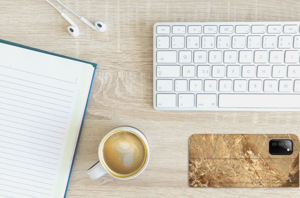Dit design hoesje met Marmer in lichtbruine kleur is voor de artistiekelingen onder ons. De Grieken en Romeinen wisten het marmer al te waarderen door het in de bouw toe te passen. Naast het witte marmer zijn de diverse soorten marmer in een gevarieerde kleurensamenstelling te krijgen. We hebben verschillende mooie kleuren op design hoesjes gezet, zoals in dit geval het lichtbruine marmer. Dit is een Samsung Galaxy M02s | A02s Standcase met marmer in lichtbruine kleur. Het marmer wordt bedrukt op alle zijden van een stand case, die beschikt over 1 vakje voor een pasje en een magnetische sluiting aan de binnenzijde. Verder heeft de hoes een houder van TPU. Door de rijkdom aan kleuren en varianties in afwerking kunnen ontwerpers met marmer schitterende architectonische projecten realiseren. Wij hebben hetzelfde gedaan en onze ontwerper veel vrijheid geboden. Het resultaat zie je terug in deze stand case met lichtbruin marmer, dat de ideale bescherming voor jouw smartphone is.