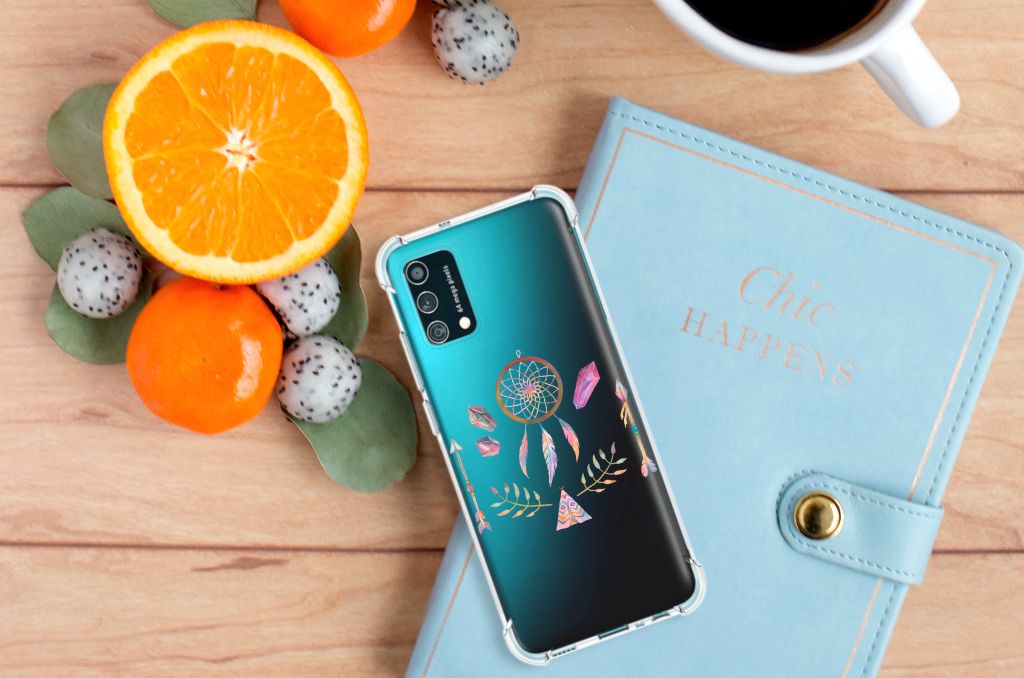 Een dromenvanger werd lang geleden al door een indianenvolk in Noord-Amerika gebruikt om nare dromen te weren. Nu nog hangen mensen over de hele wereld dromenvangers boven hun bed. Maar ook op een telefoonhoesje staat zo’n boho dreamcatcher heel mooi. Dit mooie design dat bestaat uit een tipi, pijlen en dromenvanger heeft veel verschillende prachtige kleuren. Maar omdat het ontwerp minimalistisch en klein is, is het design toch subtiel te noemen. Dit ontwerp staat op een Stevig Bumper Hoesje voor je Samsung Galaxy M02s | A02s. Een TPU Case anti-shock is perfect voor de actieve smartphonegebruiker. Denk aan mensen die veel sporten, reizen of wandelen en net iets meer zekerheid willen als het op hun geliefde telefoon aankomt. Het hoesje biedt stevige bescherming dankzij de opstaande randen. Het hoesje is volledig gemaakt van TPU, een supersterk maar ook licht en flexibel materiaal dat jouw telefoon optimaal beschermt.