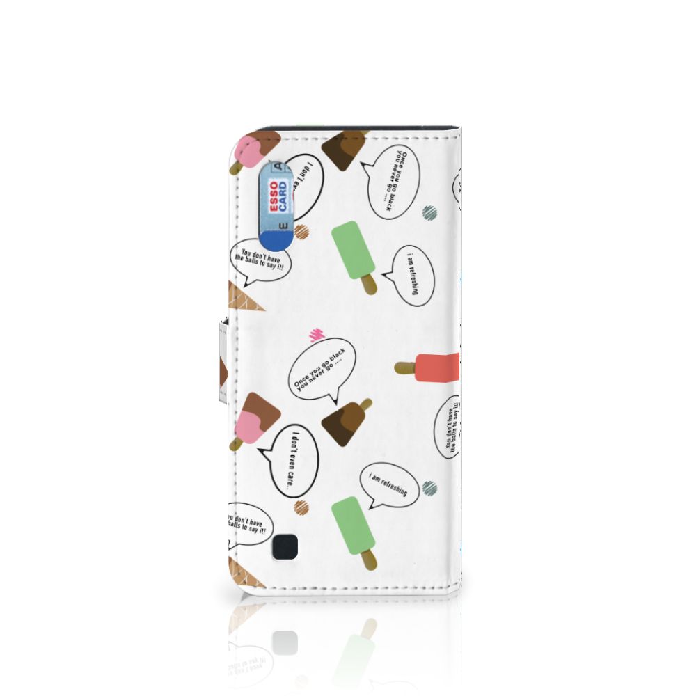 Van dit vrolijke Samsung Galaxy M10 Book Cover met daarop verschillende soorten ijsjes met tekstwolkjes krijg je sowieso een vrij en zomers gevoel. De zomer komt naar je toe met deze print van ijsjes met tekstwolkjes. Ben je op het strand, dan ontbreekt een lekker ijsje natuurlijk niet. Net zoals je je smartphone bij de hand hebt, met daaromheen een design hoesje met bijzondere ijsjes en tekstwolkjes. Jouw telefoon kan dan de bescherming in de vorm van een boekhoesje met ijsjes zeer goed gebruiken. Alle zijden van dit hoesje worden bedrukt met ijsjes en tekstwolkjes. De case heeft een lipje aan de buitenzijde voor het afsluiten van de telefoon en de houder aan de binnenzijde is van TPU. Onder alle weersomstandigheden zal deze case met verschillende opbergvakjes perfect functioneren, ook op het strand met een ijsje in je hand.