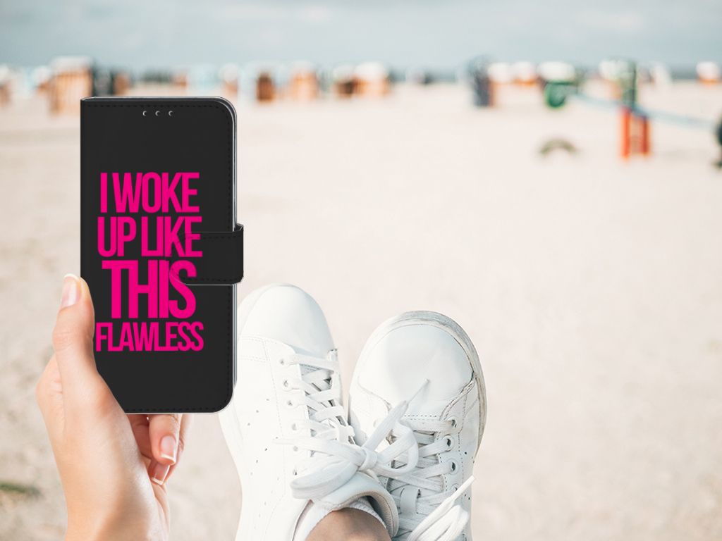 Met dit zwarte Samsung Galaxy M10 Hoesje met naam met paarse tekst heb je een geweldige bescherming van je smartphone in handen. Dit zwarte hoesje met Woke Up tekst is een must voor jouw smartphone. Met dit design hoesje tekst val je ook zeker op. Je weet ook zeker dat het hoesje exclusief is. Het design is gemaakt door B2C Telecom. Het hoesje heeft verschillende vakjes en is aan alle zijden bedrukt. Ook het lipje aan de buitenkant kan worden bedrukt. De houder is van TPU, de buitenzijde van PU-leer. We willen je er ook op wijzen dat je zelf een hoesje kunt ontwerpen, met eigen beelden en teksten. Met onze Phone Case Designer kun je zelfs opvallende effecten, patronen en clip arts aan het ontwerp toevoegen.