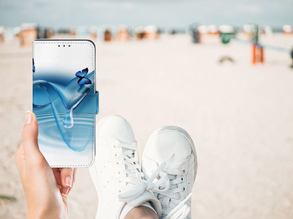 De bedrukking met de blauwe vlinders in combinatie met de blauwe golven maken van deze bookstyle case een ware eyecatcher. De opvallende kleuren maken dit een erg gewild Samsung Galaxy M10 hoesje. De bedrukking wordt met hoge kwaliteit uitgevoerd door onze geavanceerde printer met duurzame inkt. En dat is niet het enige wat duurzaam is aan dit Telefoonhoesje met Pasjes, de bookstyle case gaat zelf ook lang mee. Naast duurzaamheid en een opvallend design, kun je in dit hoesje ook nog drie pasjes kwijt. Als je dan een keer op pad gaat, kun je jouw portemonnee gewoon thuislaten en deze dus niet kwijtraken.