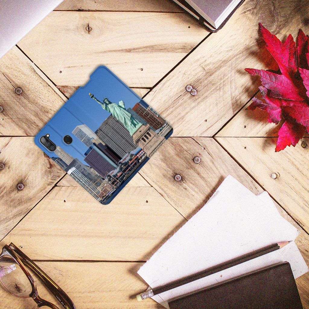 Natuurlijk mag een hoesje met de print van New York niet in onze collectie design hoesjes ontbreken. New York is immers de grootste stad van de Verenigde Staten van Amerika en een van de belangrijkste wereldsteden. Deze stad, ook wel New York City of NYC genoemd, moet je gewoon minstens eenmaal in je leven bezocht hebben. Doe je dat, dan gaat je telefoon natuurlijk mee en deze bescherm je met deze leuke Samsung Galaxy M11 | A11 Book Cover met print van New York. Je pasje kun je in het opbergvakje aan de binnenzijde stoppen en de case sluit perfect af dankzij de magneet. The City That Never Sleeps, zo wordt New York ook wel genoemd. De print op deze stand case met print van New York, die een houder heeft van TPU, oogt zeer stijlvol.