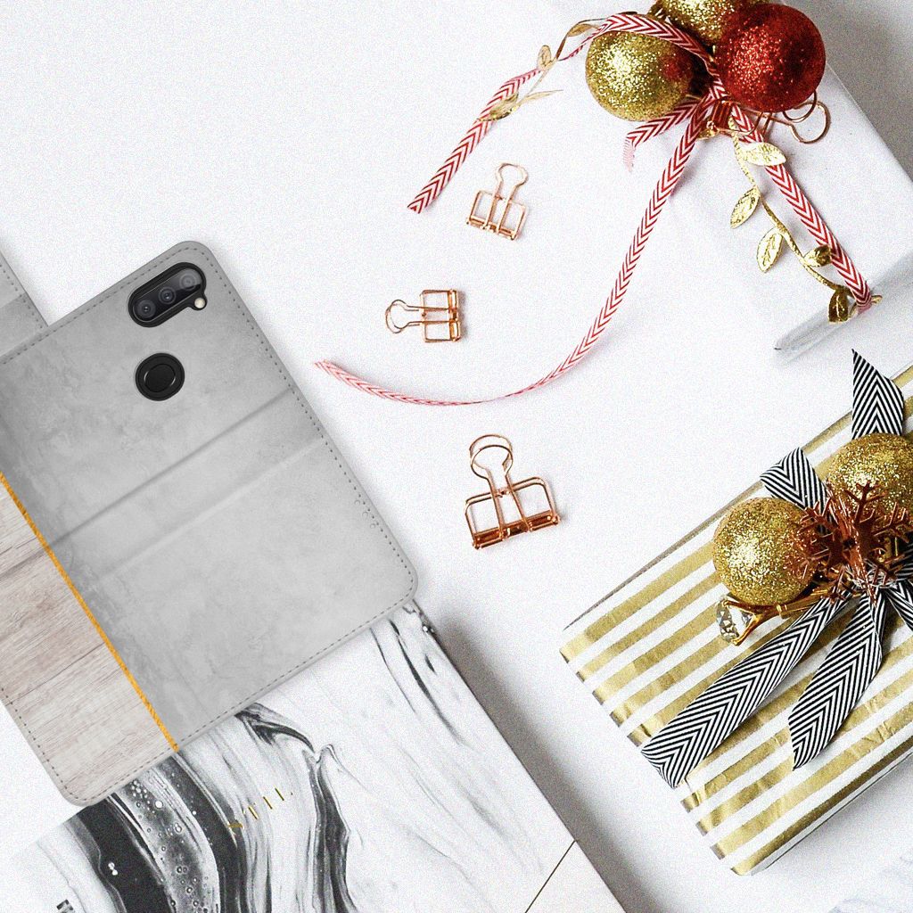 Samsung Galaxy M11 | A11 Bookstyle Case met pasjes Wood Concrete