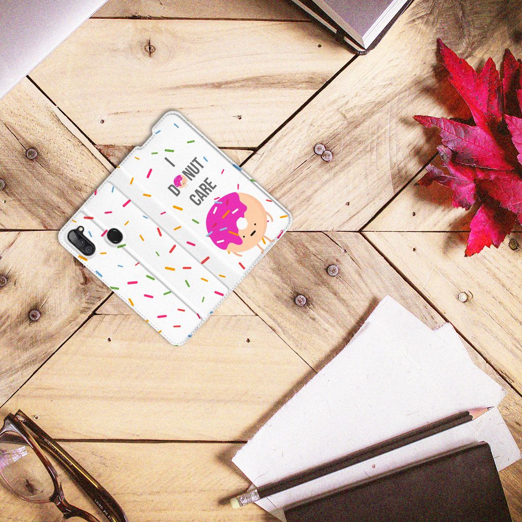 De cartoon met Donut op dit design hoesje geeft jouw smartphone een grappige en vrolijke uitstraling. De Samsung Galaxy M11 | A11 Flip Style Cover zorgt ervoor dat je je schouders op zult halen als je telefoon een keer op de grond valt. Omdat er geen schade zal optreden kun jij je weg weer heel makkelijk vervolgen. De grappige Donut Care stand case is een zeer populair product. Allereerst is het nergens anders te krijgen. Het design is namelijk van de hand van onze eigen ontwerper. Daarnaast zal de case jouw smartphone aan alle zijden beschermen. Ook heeft het Donut Care hoesje een vakje aan de binnenzijde en een speciale standaard. Ook kun je je eigen unieke hoesje ontwerpen, met eigen cartoons, foto’s en teksten. De houder aan de binnenzijde van de Donut Care case is van TPU, de buitenzijde van PU leer.