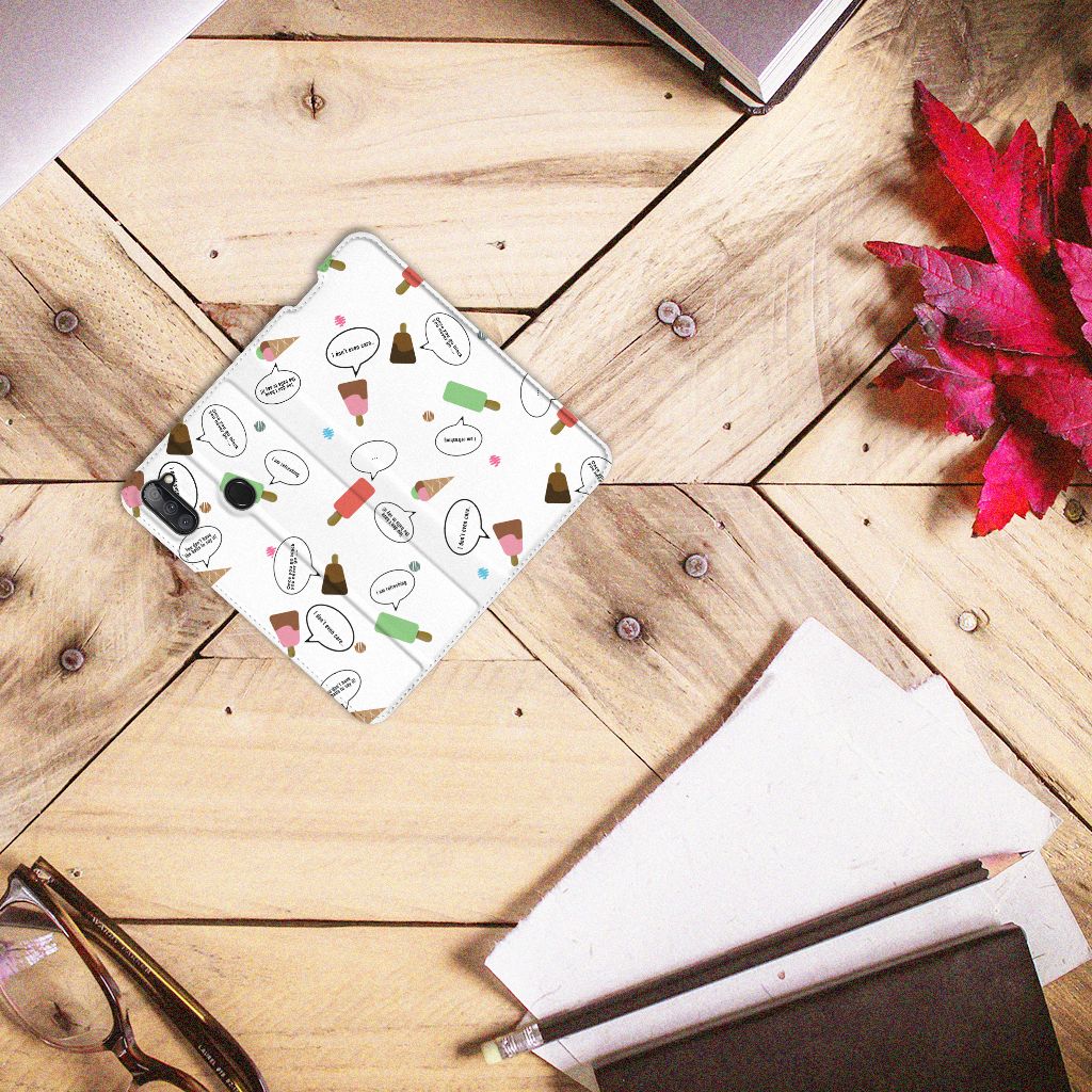 Van deze vrolijke Samsung Galaxy M11 | A11 Flip Style Cover met daarop verschillende soorten ijsjes met tekstwolkjes krijg je sowieso een vrij en zomers gevoel. De zomer komt naar je toe met deze print van ijsjes met tekstwolkjes. Ben je op het strand, dan ontbreekt een lekker ijsje natuurlijk niet. Net zoals je je smartphone bij de hand hebt, met daaromheen een design hoesje met bijzondere ijsjes en tekstwolkjes. Jouw telefoon kan dan de bescherming in de vorm van een stand case met ijsjes zeer goed gebruiken. Alle zijden van dit hoesje worden bedrukt met ijsjes en dankzij de speciale standaard is het erg prettig om filmpjes te bekijken. De case wordt aan de binnenzijde met een magneet afgesloten en de houder aan de binnenzijde is van TPU. Onder alle weersomstandigheden zal deze case met 1 opbergvakje en ijsjes perfect functioneren, ook op het strand met een ijsje in je hand.