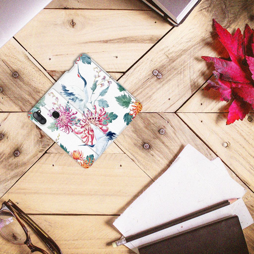 Verspreid over de hele wereld leven 19 soorten ooievaars. De spanwijdte – dat is de afstand van vleugeltip tot vleugeltip – van een volwassen ooievaar kan 2.50 meter bedragen. De gebieden waarin de ooievaar broedt, liggen in heel Europa, het Midden-Oosten, West- en Centraal-Azië en Noordwest-Afrika. Het ideale leefgebied van de ooievaar is een half open tot open landschap met veel afwisseling in grondgebruik en begroeiing. De begroeiing op dit design hoesje, in allerlei verschillende kleuren, zal niet alleen voor de ooievaars fraai zijn. Jij zult er zelf ook heel vrolijk van worden. Het in het oog springende design staat op een Hoesje maken. Deze case beschermt jouw Samsung Galaxy M11 | A11 aan alle kanten en beschikt over een 1 opbergvakje en een speciale standaard. Het hoesje wordt afgesloten met een magneet aan de binnenzijde. De houder aan de binnenzijde is van TPU. Alle zijden van de stand case worden bedrukt.