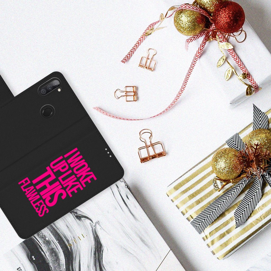 Met dit zwarte Samsung Galaxy M11 | A11 Hoesje met naam met paarse tekst heb je een geweldige bescherming van je smartphone in handen. Dit zwarte hoesje met Woke Up tekst is een must voor jouw smartphone. Met dit design hoesje tekst val je ook zeker op. Je weet ook zeker dat het hoesje exclusief is. Het design is gemaakt door B2C Telecom. Het hoesje heeft verschillende vakjes en is aan alle zijden bedrukt. Ook het lipje aan de buitenkant kan worden bedrukt. De houder is van TPU, de buitenzijde van PU-leer. We willen je er ook op wijzen dat je zelf een hoesje kunt ontwerpen, met eigen beelden en teksten. Met onze Phone Case Designer kun je zelfs opvallende effecten, patronen en clip arts aan het ontwerp toevoegen.
