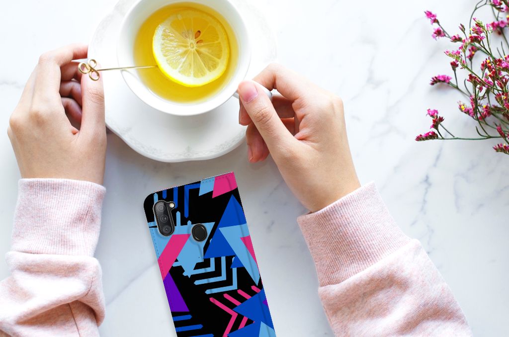 Dit fraaie hoesje met het design Funky Triangle is alles behalve eenvoudig en sober. Dat komt goed uit, want je hebt natuurlijk ook geen doorsnee telefoon gekocht. Mocht je dat wel hebben gedaan, dan wordt hij meteen speciaal als je een Samsung Galaxy M11 | A11 Stand Case koopt voor een spotprijsje. Een ding is zeker: opvallen ga je beslist met dit hoesje met paarse, roze en blauwe driehoeken. Jij zult in je element zijn met dit design hoesje met paarse, roze en blauwe driehoeken, omdat het er schitterend uitziet en jouw telefoon perfect beschermt. Het smartphonehoesje beschermt jouw telefoon aan alle zijden en beschikt over 1 opbergvakje en een speciale standaard. Het hoesje wordt afgesloten met een magneet aan de binnenzijde. De houder aan de binnenzijde is van TPU. Alle zijden van de stand case worden bedrukt. De paarse, roze en blauwe driehoeken maken de case helemaal af.