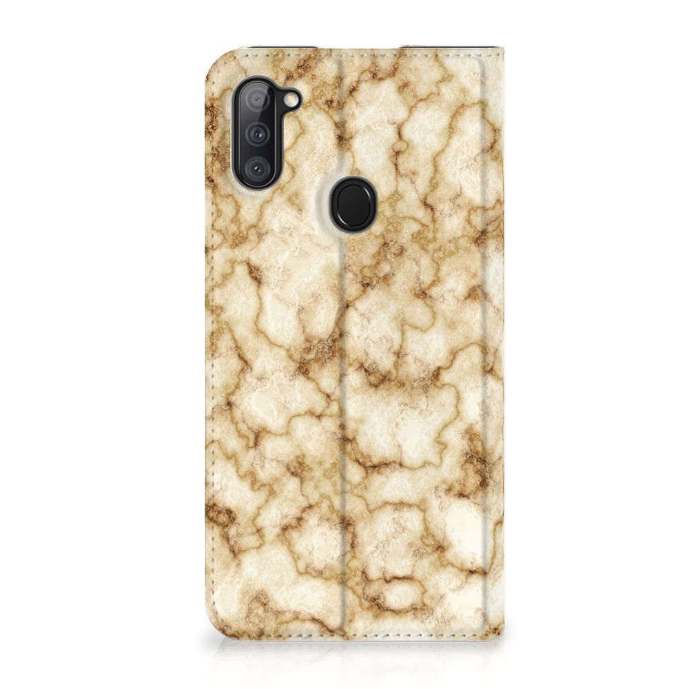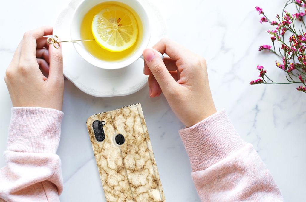 Deze Samsung Galaxy M11 | A11 Standcase met Marmer Goud is het waard om een blokje voor om te rijden. Dit is overigens niet nodig. Als je het hoesje met goud marmer nu bestelt heb je het zeer snel in huis. Je kunt er bij wijze van spreken thuis op gaan zitten wachten. Je hebt diverse soorten marmer. We hebben enkele fraaie kleuren op onze hoesjes gezet, zoals in dit geval het gouden marmer. Het gouden marmer wordt bedrukt op alle zijden van de stand case, die beschikt over een vakje voor pasjes of briefgeld en een magnetische sluiting aan de binnenzijde. Verder heeft de case met goud marmer een houder van TPU. De rijkheid aan kleuren en variaties in afwerking is een schitterende eigenschap van marmer. Dit stand hoesje met goud marmer heeft ook veel schitterende eigenschappen en is de ideale bescherming voor jouw smartphone.