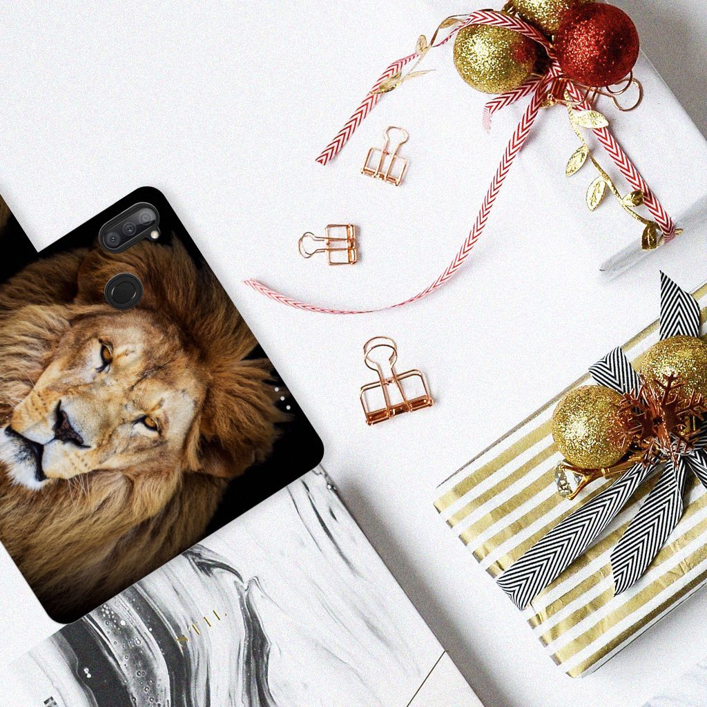 Samsung Galaxy M11 | A11 Telefoonhoesje met Pasjes en met magnetische sluitclip Leeuw