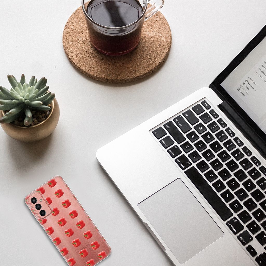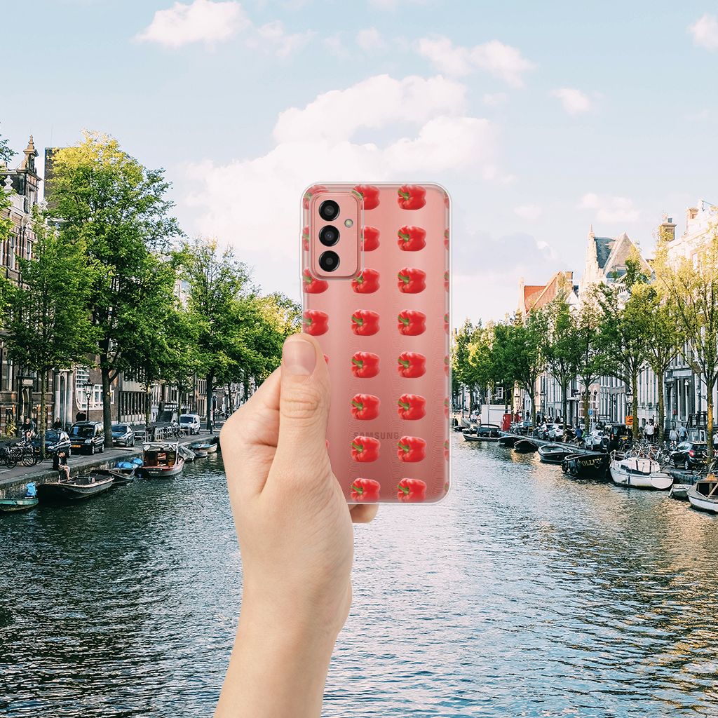 Er zit pit in jouw Samsung Galaxy M13 | M23 Siliconen Case dankzij dit design met rode paprika’s. Paprika’s zijn er in allerlei kleuren en vormen en ze hebben gemeen dat ze heel erg gezond zijn. De rode paprika’s op deze case staan op een grijs met witte geblokte achtergrond en vormen een opvallende verschijning. Heb jij ooit iemand in je nabije omgeving rond zien lopen met een design hoesje met rode paprika’s? Waarschijnlijk niet. Dit hoesje wordt alleen aan de bovenkant bedrukt met paprika’s en is zeer flexibel. De randen van het hoesje blijven transparant en worden niet bedrukt. Met dit hoesje past jouw telefoon altijd in je broekzak. Zeker weten dat je met dit hoesje met rode paprika’s een smartphone accessoire te pakken hebt waarmee je jezelf in de schijnwerpers zet. Als je andere kleuren paprika’s op je hoesje wilt, raden we je aan ons assortiment design hoesjes te bekijken of zelf een hoesje te ontwerpen.
