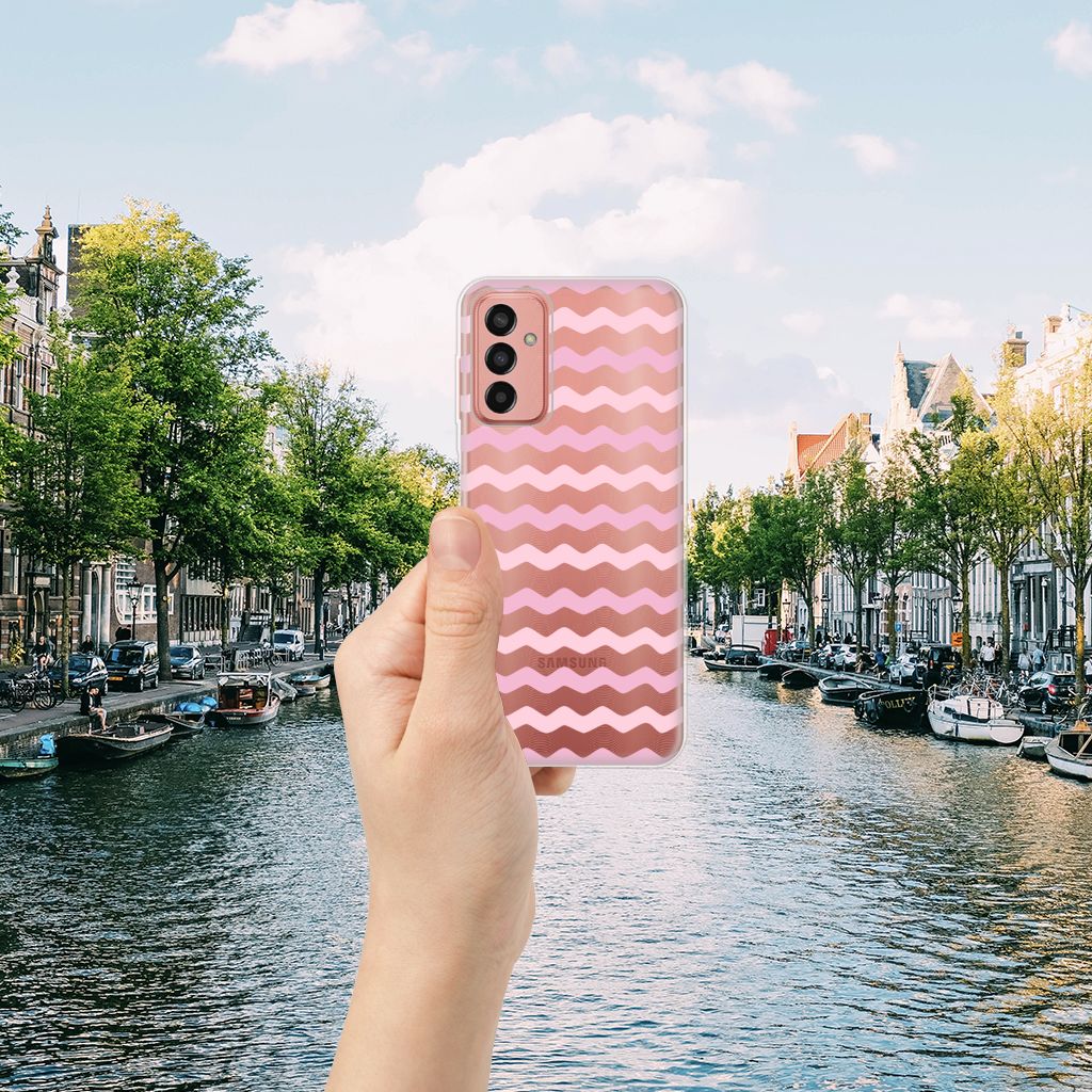 Dit design hoesje met Waves Roze afdruk is speciaal op maat gemaakt voor jouw telefoon. We hebben verschillende kleurstellingen gebruikt in het design, zodat de case er spannend en leuk uitziet. Dit licht roze hoesje met verschillende soorten golven ziet er opwindend uit. Het Samsung Galaxy M13 | M23 TPU bumper wordt in ons eigen magazijn bedrukt, vandaar dat we de kosten zeer laag kunnen houden. Wij kunnen het duurzame hoesje met licht roze golven zeer snel leveren. Heb jij altijd al een design hoesje met verschillende soorten licht roze willen hebben? Deze TPU case met licht roze golven wordt alleen aan de bovenkant bedrukt en is zeer flexibel. De randen van het hoesje met licht roze golven blijven transparant en worden niet bedrukt. Met dit licht roze hoesje past jouw telefoon altijd in je broekzak.