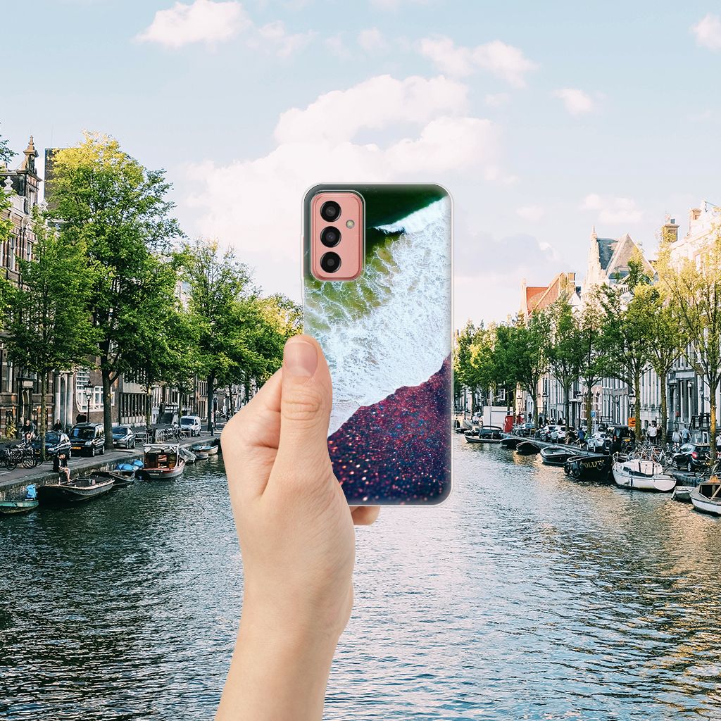 Ben je een beetje een artistiek type? Dan kan je wel eens enthousiast raken van dit smartphonehoesje. ‘Sea in Space’, zo noemt onze grafisch designer dit ontwerp. Dus mensen die van zon en zee kunnen genieten en tegelijkertijd van science fiction houden zullen deze case ongetwijfeld mooi vinden. Een beetje glitter en glamour zou je met een beetje fantasie ook nog wel kunnen ontdekken in dit design hoesje. Dit artistieke kunstwerkje is voor heel weinig geld te bestellen op onze website. Je krijgt er maximale bescherming van je Samsung Galaxy M13 | M23 voor terug. Het design staat op een TPU Hoesje. Dit hoesje wordt alleen aan de bovenkant bedrukt en is zeer flexibel. De randen van het hoesje blijven transparant en worden niet bedrukt.