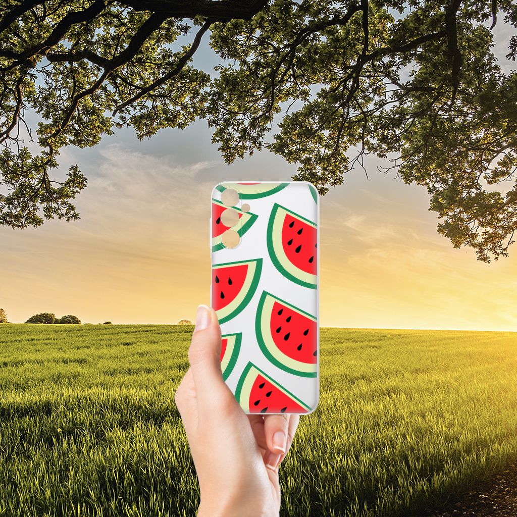 Watermeloenen zijn uitstekende dorstlessers, misschien dat je daarom juist in de zomermaanden extra enthousiast raakt van dit design hoesje Watermelons. Jij blijft gezond als je zo nu en dan een watermeloen neemt, jouw smartphone blijft in tact als je er deze Samsung Galaxy M14 Siliconen Case omheen doet. Deze tpu case wordt alleen aan de bovenkant bedrukt met watermeloenen is zeer flexibel. De randen van het hoesje blijven transparant. Je kunt ook kiezen voor andere soorten fruit op je hoesje. Kijk maar eens naar onze andere design hoesjes op onze website.