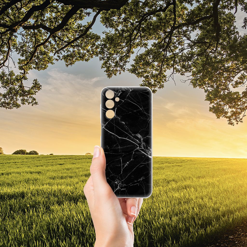Dit design hoesje met Marmer Zwart is voor de artistieke personen onder ons. De Grieken en Romeinen wisten het materiaal al te waarderen door het in de bouw toe te passen. Naast het witte marmer met haar zacht grijze geaderde belijning zijn de diverse soorten in een gevarieerd kleurenpallet te krijgen. We hebben mooie kleuren op design hoesjes gezet, zoals in dit geval zwart marmer. Dit is een Samsung Galaxy M14 TPU Siliconen Hoesje met marmer in bruine kleur. Het marmer wordt bedrukt op de voorkant van een tpu case, die beschikt over opstaande randen aan de voorkant en heel goed combineert met een screenprotector van glas of van folie. De rijkdom aan kleuren en varianties in afwerking geeft ontwerpers de vrijheid om met marmer hele mooie architectonische projecten te realiseren. Wij hebben onze designer tevens veel vrijheid gegeven. Het resultaat zie je terug in deze tpu case met zwart marmer, die jouw smartphone goed beschermt. De zijkanten van de case worden niet bedrukt met het zwarte marmer.