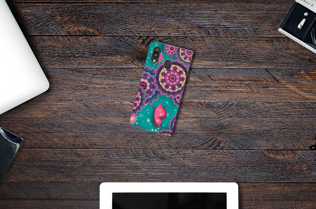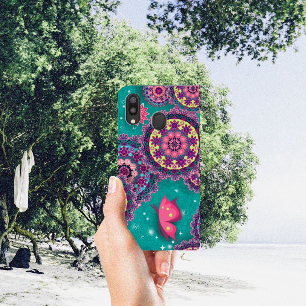 Deze opvallende Samsung Galaxy M20 Bookcase met Cirkels en Vlinders is een ware eyecatcher. De meeste vlinders hebben een onopvallende vleugelkleur en dat kun je van de soort op dit hoesje ook zeker wel zeggen. Wij kunnen deze opvallende vlinders en cirkels op een zeer handige stand case zetten. Deze hoesjes zijn zeer gewild. Met onze geavanceerde printer zetten we de print van opvallende vlinders en cirkels op alle zijden van het hoesje. De case met vlinders heeft aan de binnenkant een houder waarin je jouw creditcard of ander pasje kwijt kunt. De case heeft bovendien een handige standaard. Verder is je telefoon natuurlijk maximaal beschermd met deze stand case met print van opvallende en kleurrijke vlinders. De houder aan de binnenzijde van het design hoesje met opvallende vlinder print is van TPU.