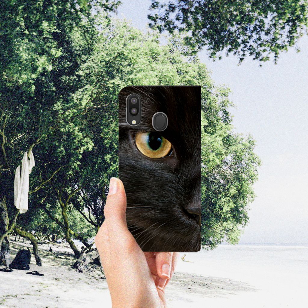 warte katten zijn heel speciaal, vandaar we een exemplaar op een design hoesje hebben gezet. Een zwarte kat schijnt bijvoorbeeld veel beter te kunnen horen dan witte katten. Deze zwarte kat staat op zeer prominente wijze op een stand case. Een Samsung Galaxy M20 Hoesje maken met zwarte kat beschermt jouw smartphone aan alle zijden en wordt ook volledig bedrukt. De stand case met zwarte kat ziet er geweldig uit en is voorzien van verschillende uitsparingen en een speciale standaard. Alle zijden van de case zijn bedrukt. Dit design hoesje is van TPU aan de binnenzijde en zeer flexibel. Verder heeft de case een houder voor een pasje.
