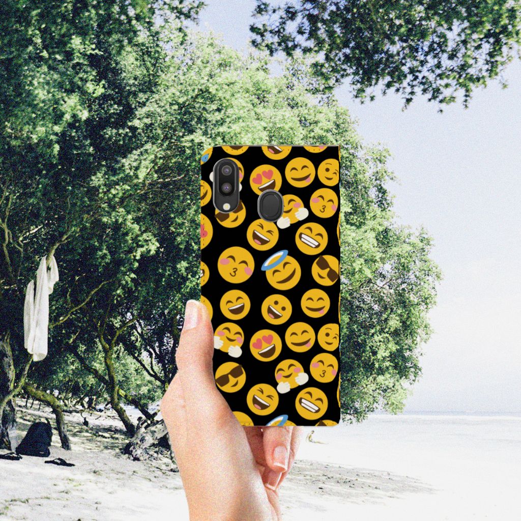Je gebruikt ze waarschijnlijk dagelijks: emoji’s. Daarom hebben we besloten ze op een design hoesje te zetten. De kleurrijke, vaak gele emoticons maken chatberichten net wat spontaner. Dat hebben we allemaal te danken aan Japan, waar de emoji’s die we zo goed kennen vandaan komen. Ondertussen zijn er meer dan 1800! Deze passen natuurlijk niet allemaal op een Samsung Galaxy M20 Hoesje met Magneet, maar we hebben de meeste gebruikte exemplaren erop gezet. Deze stand case is voorzien van een houder voor een pasje. Super handig. De telefoon zelf zit in een houder van TPU, dat zeer flexibel is. We gebruiken emoji’s vaak om complete woorden te vervangen. Dit smartphone hoesje zegt dan ook meer dan duizend woorden kunnen. De stand case heeft een magnetische sluiting aan de binnenzijde en wordt aan alle kanten bedrukt met emoji’s. Tevens is er een standaard.