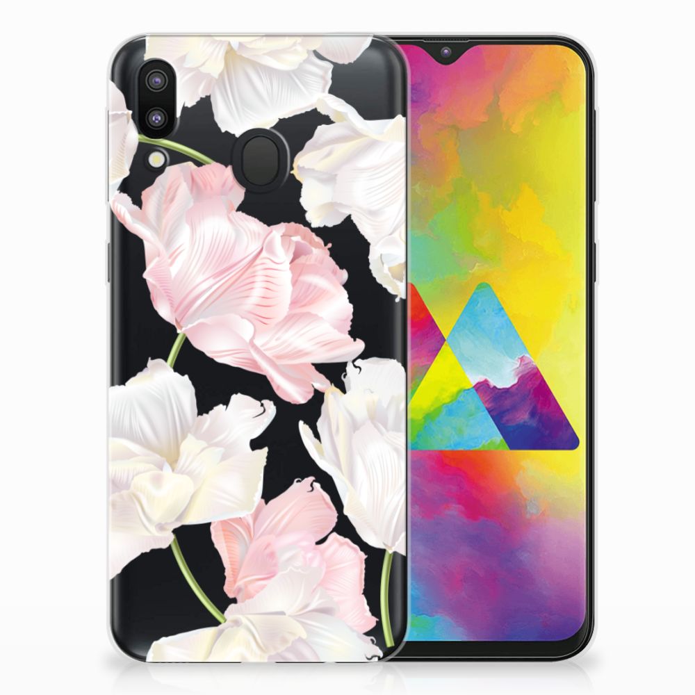 Een bosje bloemen doet een mens (en zijn smartphone) goed. De witte en roze bloemen op deze Samsung Galaxy M20 (Power) TPU Case geven jouw smartphone een zeer mooie uitstraling. Je wordt er ook meteen een stuk rustiger van als je aan het appen of aan het bellen bent. Valt dan je telefoon op de grond, dan zal er dankzij de tpu case met het design Lovely Flowers ontstaan. Helemaal niet als je er een screenprotector bij hebt gekocht. Onze tpu cases met roze en witte bloemen zien er zeer prettig uit en zijn heel praktisch, getuige onder meer de opstaande randen en het flexibele materiaal. Alleen de achterkant van de tpu case wordt bedrukt met roze en witte bloemen. Op deze tpu case kun je trouwens ook een eigen ontwerp zetten. In een paar simpele stappen ontwerp je zelf een stand case met daarop jouw favoriete bloemen.