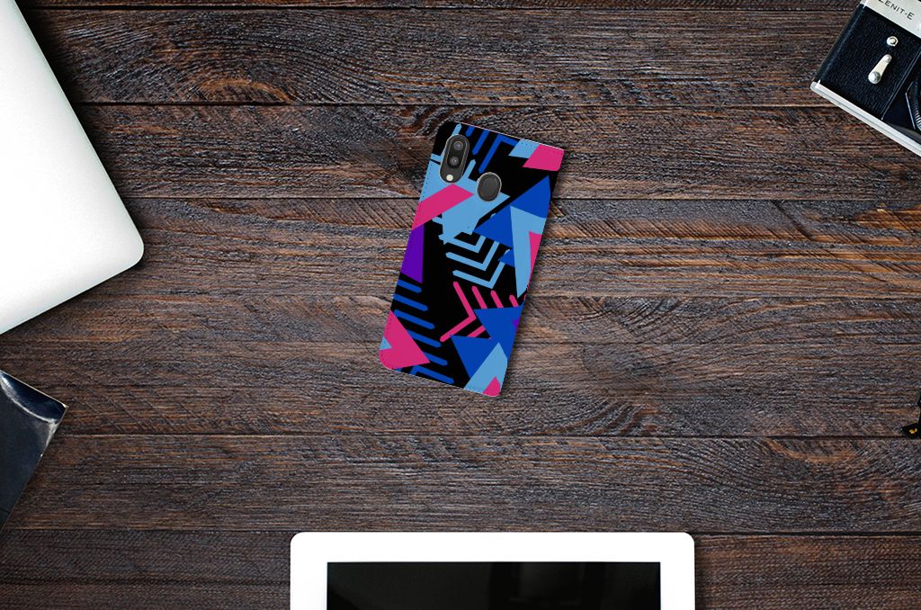 Dit fraaie hoesje met het design Funky Triangle is alles behalve eenvoudig en sober. Dat komt goed uit, want je hebt natuurlijk ook geen doorsnee telefoon gekocht. Mocht je dat wel hebben gedaan, dan wordt hij meteen speciaal als je een Samsung Galaxy M20 Stand Case koopt voor een spotprijsje. Een ding is zeker: opvallen ga je beslist met dit hoesje met paarse, roze en blauwe driehoeken. Jij zult in je element zijn met dit design hoesje met paarse, roze en blauwe driehoeken, omdat het er schitterend uitziet en jouw telefoon perfect beschermt. Het smartphonehoesje beschermt jouw telefoon aan alle zijden en beschikt over 1 opbergvakje en een speciale standaard. Het hoesje wordt afgesloten met een magneet aan de binnenzijde. De houder aan de binnenzijde is van TPU. Alle zijden van de stand case worden bedrukt. De paarse, roze en blauwe driehoeken maken de case helemaal af.
