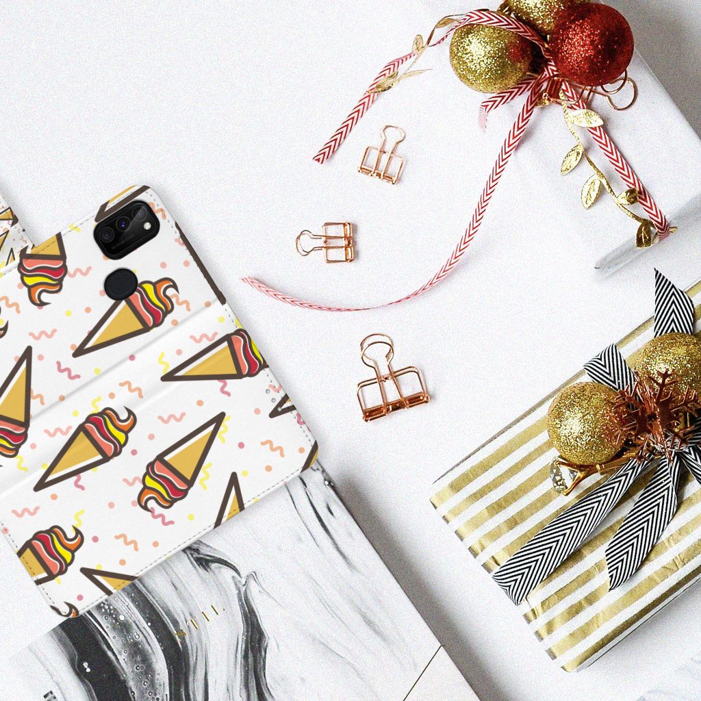 Een vrolijk Samsung Galaxy M21 | M30s Book Cover met daarop verschillende ijsjes. Als je daar geen zomers gevoel meer van krijgt, weten wij het ook niet meer. De zomer en ijsjes zijn onlosmakelijk met elkaar verbonden. Tijdens een bezoekje aan het strand mag een lekker ijsje bijvoorbeeld niet ontbreken. Een design hoesje met lekkere Icecream print past daar natuurlijk ook ontzettend goed bij. Jouw telefoon is helemaal beschermd met een boekhoesje met ijsjes design. De aankoop van deze case is een heerlijke investering, die zich gegarandeerd terugbetaalt. Alle zijden van dit hoesje worden bedrukt met ijsjes. De case heeft een lipje aan de buitenzijde voor het afsluiten van de telefoon en de houder aan de binnenzijde is van TPU. Onder alle weersomstandigheden zal deze case met verschillende opbergvakjes perfect functioneren, ook in de zomer met een ijsje in je hand. Dit smaakvolle hoesje is zeer goedkoop te bestellen en wordt zeer snel bezorgd.