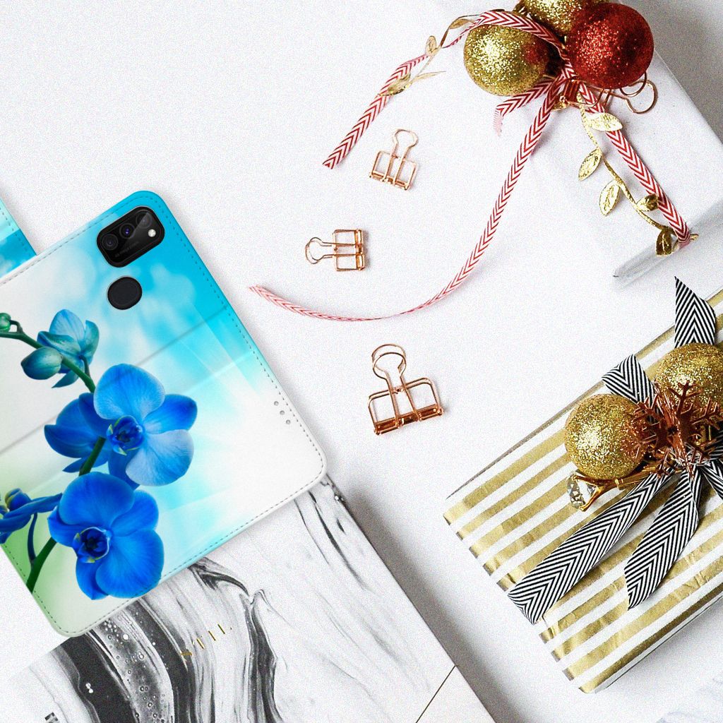 Samsung Galaxy M21 | M30s Hoesje met magnetische sluitclip Orchidee Blauw